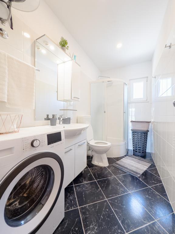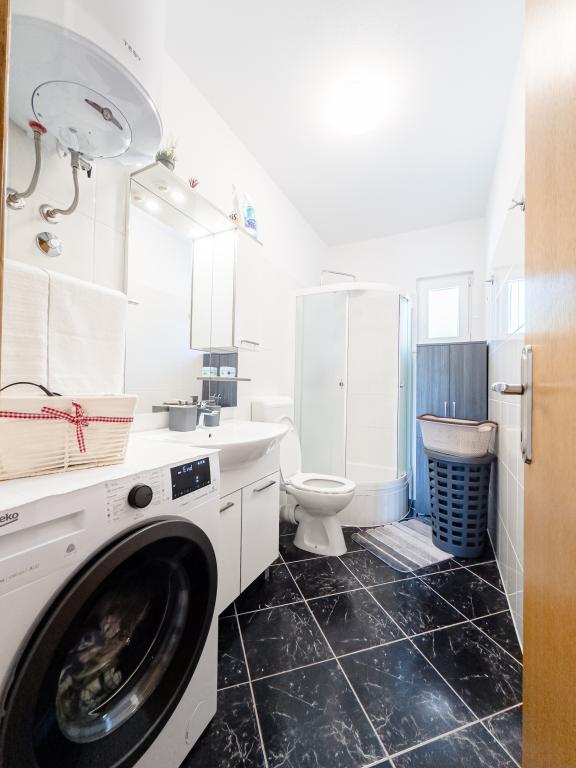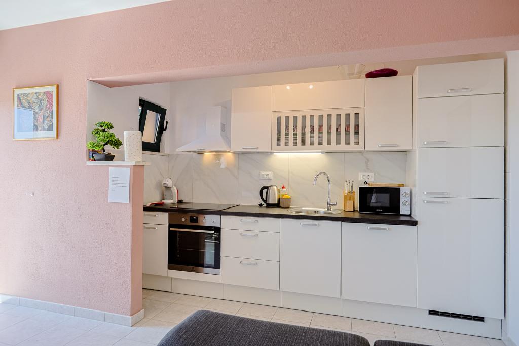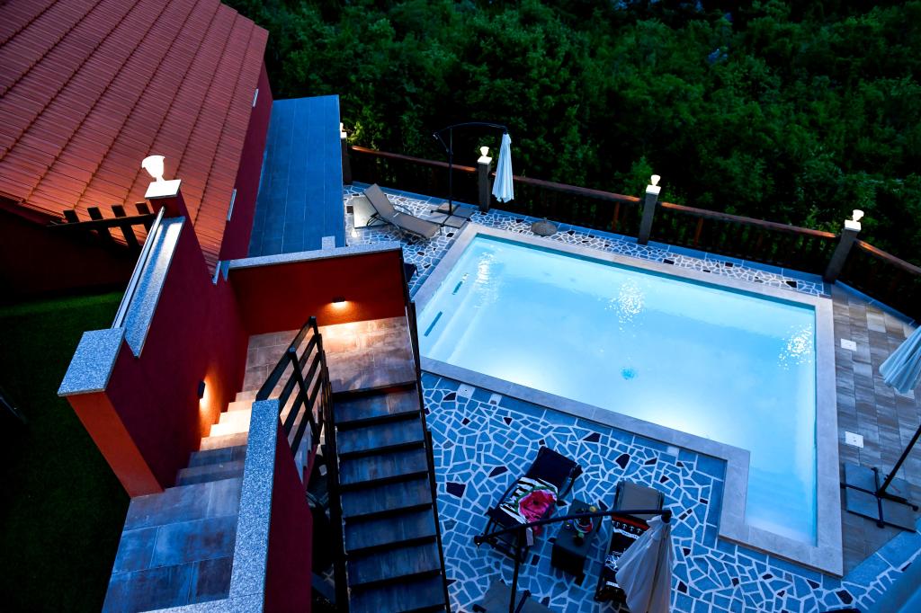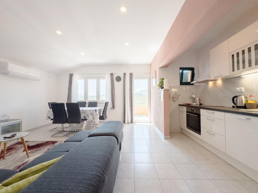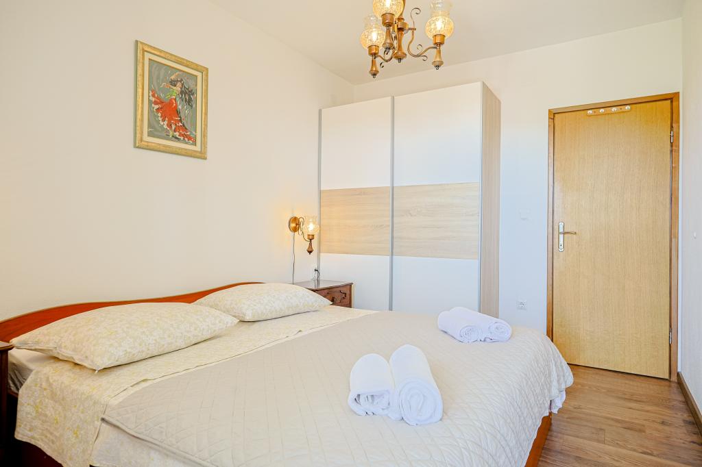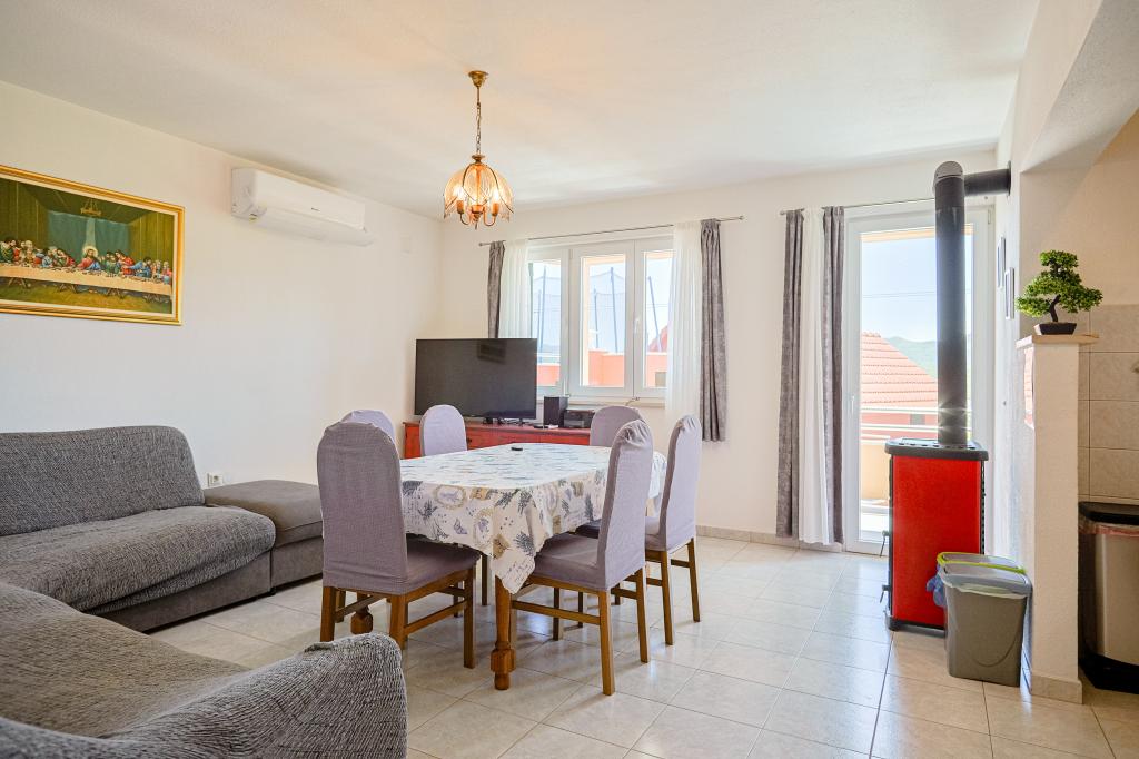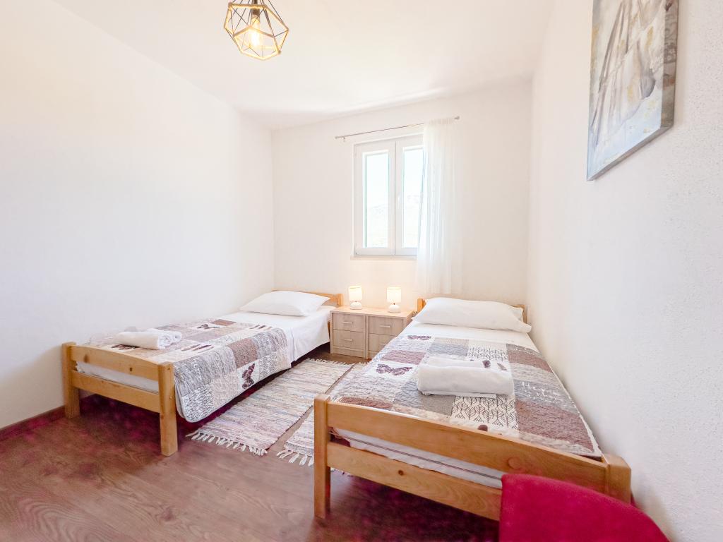 Prostorna počitniška hiša bo poskrbela za popolno uživanje in sprostitev za 12 oseb. Prostoren vrt z ogrevanim bazenom velikosti 7 x 4 metre z vodno in zračno masažo za zabavo in sprostitev. Ob bazenu je letna kuhinja z jedilnico in kopalnico, v sklopu katere je tudi zunanji žar. Vsak apartma ima 3 spalnice, 2 kopalnici, popolnoma opremljeno kuhinjo, prostorne dnevne sobe s pametnimi televizorji in balkone s pogledom na bazen in goro Biokovo. Ponudba vključuje trampolin za najmlajše, notranji žar, 5 parkirnih mest in veliko teraso. Edinstvenost te nepremičnine je v tem, da se hiša nahaja na samem, zato ste lahko prepričani, da boste uživali v popolni zasebnosti. Lokacija hiše je odlična, saj je 25 minut vožnje do Jadranskega morja, 10 minut vožnje do trgovin, kavarn in restavracij. Mesta Makarska, Imotski, Split, Omiš, Međugorje, Makarska in druge privlačne lokacije so od nas oddaljene manj kot 20 minut do 1 ure vožnje. Vhod na avtocesto je oddaljen 9 km.