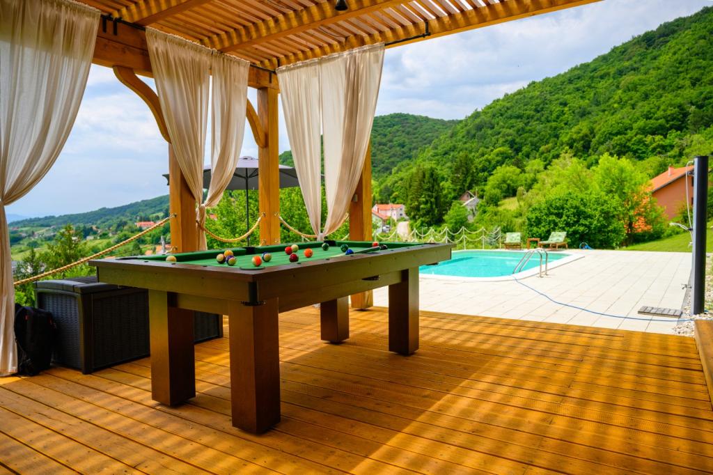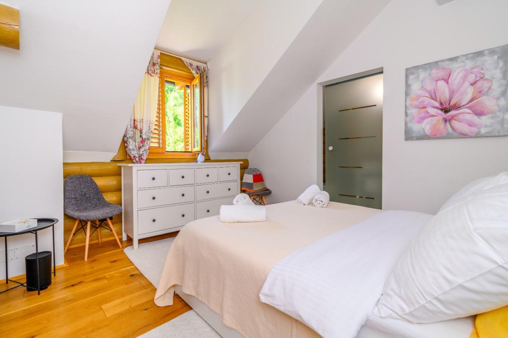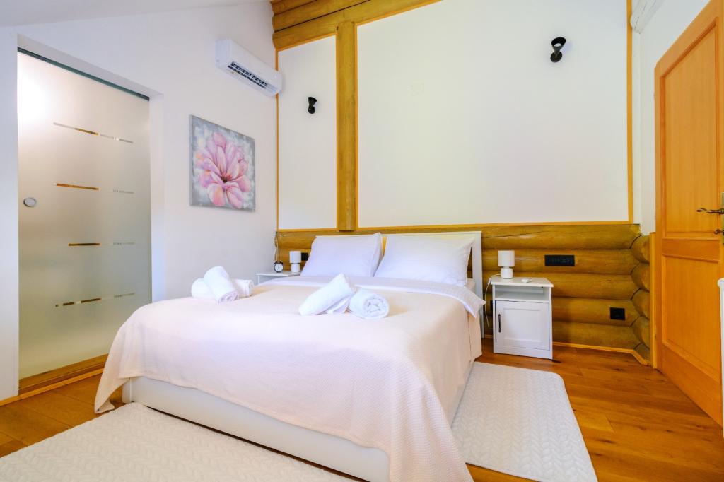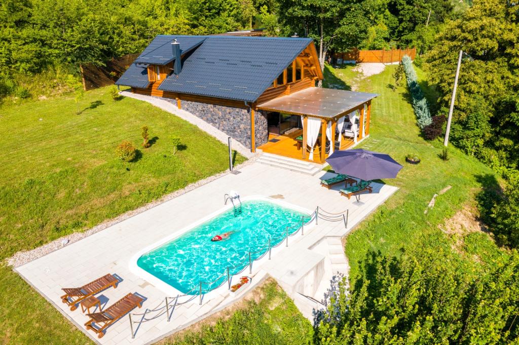 Nedaleč od Zagreba, le 44 km stran in 350 metrov nad morjem, ob vznožju gorovja Japetić, se nahaja lesena hiša Wellspring v Sveti Jani (Gorica Svetojanska). Del parcele (skupaj 2.700 m2) je vključen v zavarovano območje Parka narave Žumberak in je kot tako še posebej navdihujoče mesto za oddih. V sami vasi je več naravnih izvirov pitne vode, prva večja vas Jastrebarski pa je oddaljena 9 km. Lesena hiša Wellspring je sestavljena iz dveh etaž z brezplačnim wi-fi. V spodnji etaži je odprt dnevni prostor s kaminom, dobro opremljena jedilnica in kuhinja, ena spalnica, spa prostor s finsko savno in jacuzzijem, walk-in tuš kabino in stranišče. V zgornjem nadstropju sta dve spalnici z lastno kopalnico in prostorom na galeriji za počitek/branje. Poleg kamina je bilo na voljo tudi centralno ogrevanje za mrzle zimske mesece ter talno ogrevanje v termah. Pokrita terasa s pogledom na jug meri 40 m2 in ima ogrevan bazen z ležalnikom, tušem in ležalniki.