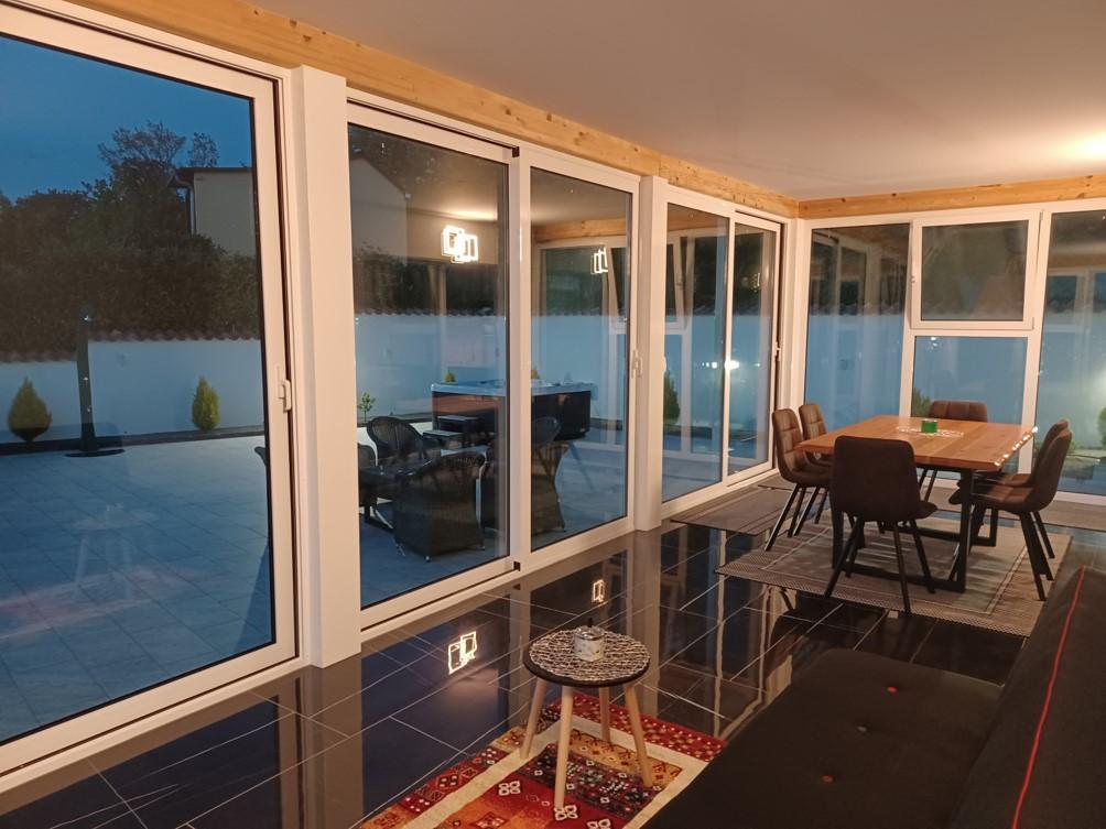 Preberite večRezervacija se plača 30% celotnega zneska. Možno vračilo rezervacije v primeru odpovedi 30 dni prej. Turistična taksa je vključena v ceno. Cena najema vključuje: - brezplačno uporabo parkirišča za 3 avtomobile, klimatsko napravo, hidromasažni bazen, posteljnino, brisače, žar, pralni stroj, pomivalni stroj, Wi-Fi. Hišni ljubljenčki NISO DOVOLJENI. Prihod po dogovoru ali do 15.00 ure. Odhod do 09:00.