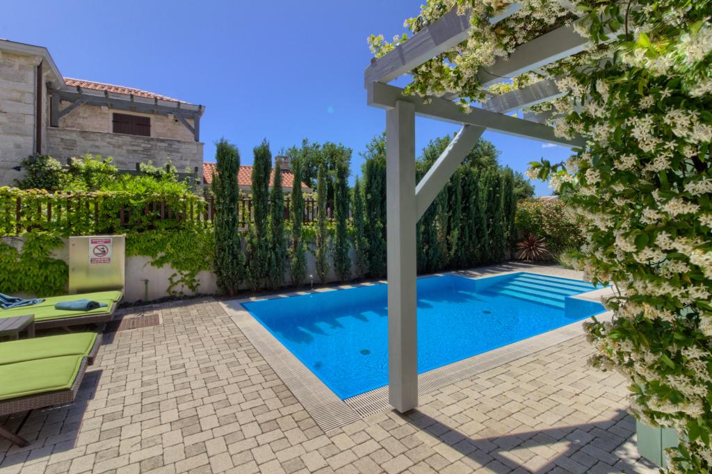 Villa Zelda je novozgrajena počitniška hiša, ki uporablja kamen kot osnovni gradbeni material, značilen za istrsko arhitekturo. Hiša je samostojna, obdana z obzidjem in ima sončno dvorišče z osvetljenim bazenom. Nahaja se v Ližnjanu, majhnem obalnem mestu v jugovzhodni Istri in je blizu lokalne plaže. Vaša terasa bo prostor, kjer se boste lahko sprostili in sprostili, organizirali žar na zunanjem kaminu, se zabavali ob bazenu ali ohladili v vročem poletnem dnevu. Pritličje ima koncept odprtega prostora s kuhinjo in jedilnico v zgornjem nivoju ter dnevno sobo s čudovitim kaminom v spodnjem nivoju. 3 spalnice v nadstropju lahko sprejmejo do 8 oseb. Vsako nadstropje ima eno kopalnico. Ta nepremičnina bi bila najbolj primerna za goste, ki se ne marajo izolirati, ampak iščejo miren dopust.