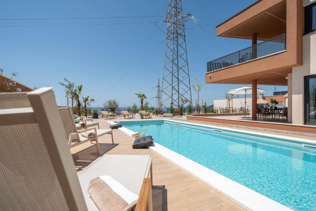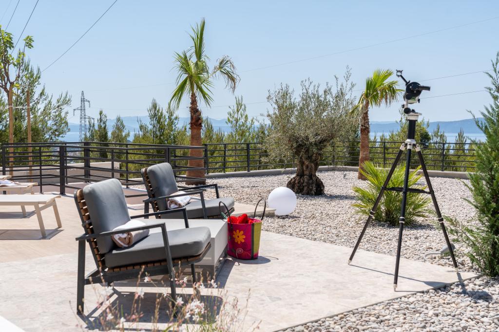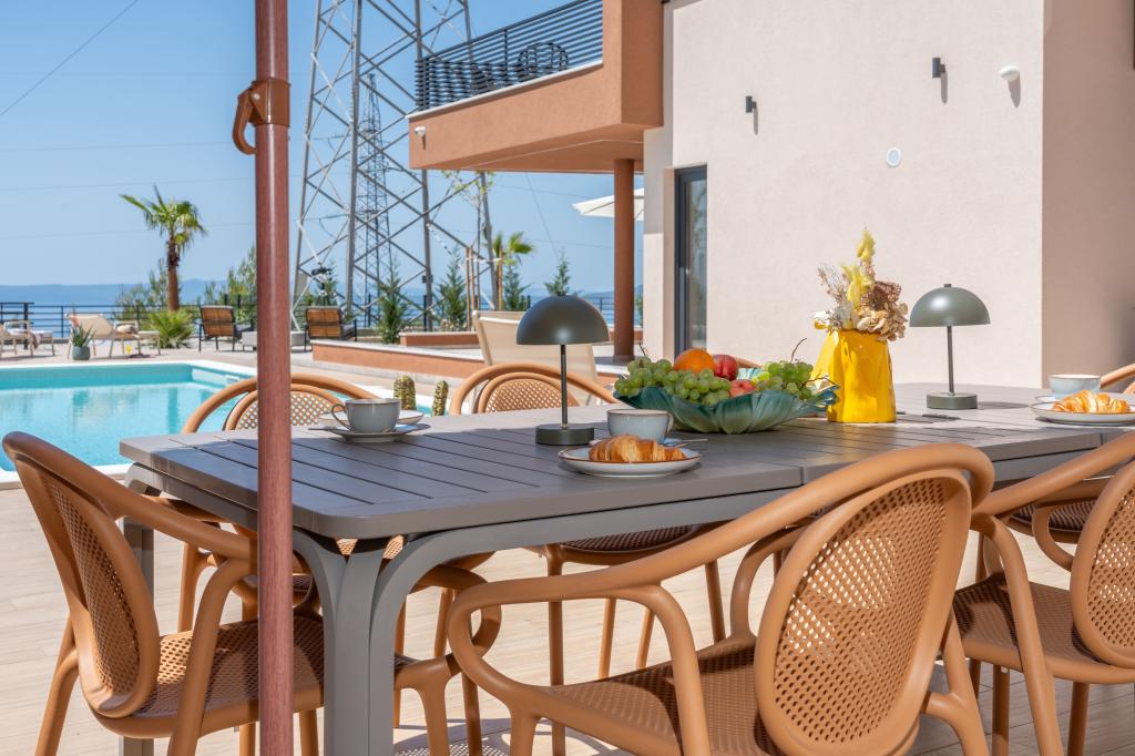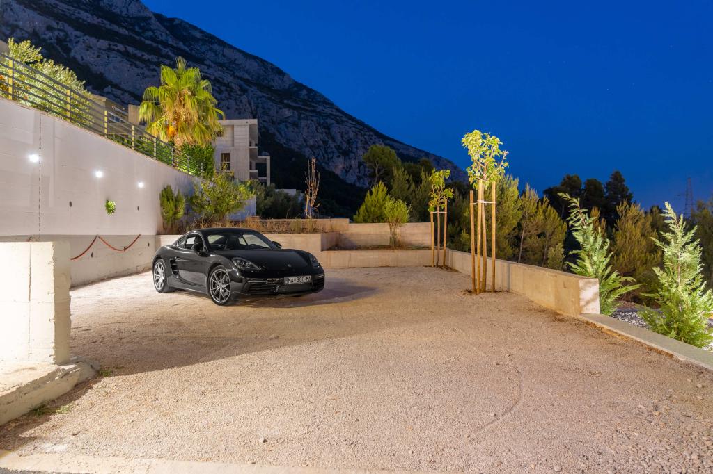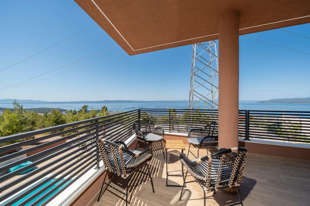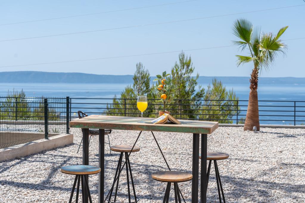 Moderna vila s spektakularnim panoramskim razgledom na azurno morje in velikansko goro Biokovo - prava luksuzna oaza za družine ali skupine do 8 srečnežev! Uživajte v zasebnem bazenu za osvežilno kopanje, žaru za nepozabne večere in prostornem zunanjem salonu, ki je kot nalašč za sprostitev, romantične trenutke ali vesele družinske večerje pod zvezdami. Vaše sanje v Dalmaciji vas čakajo!