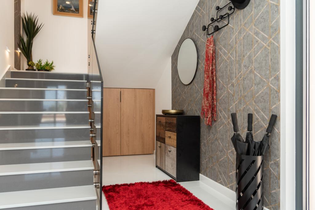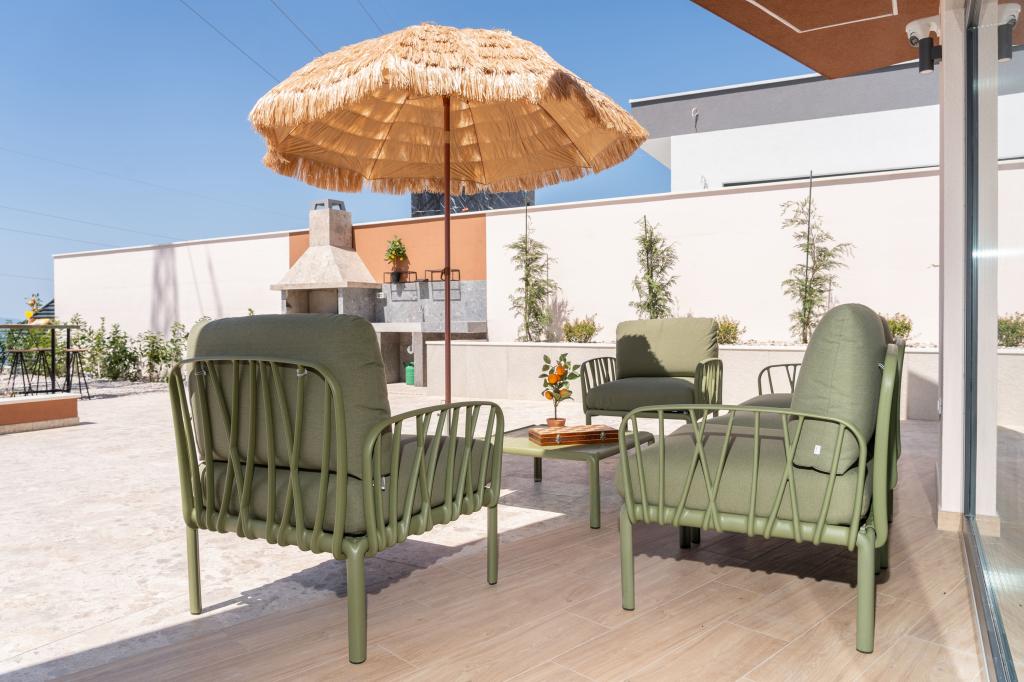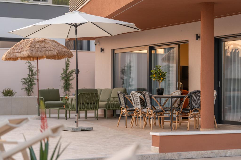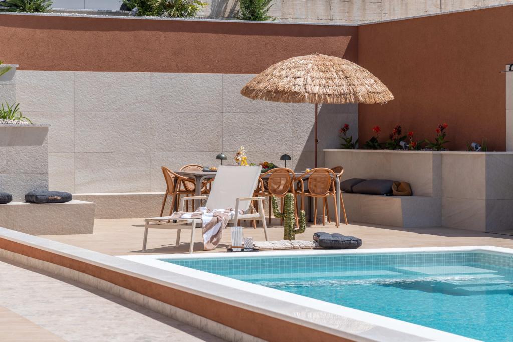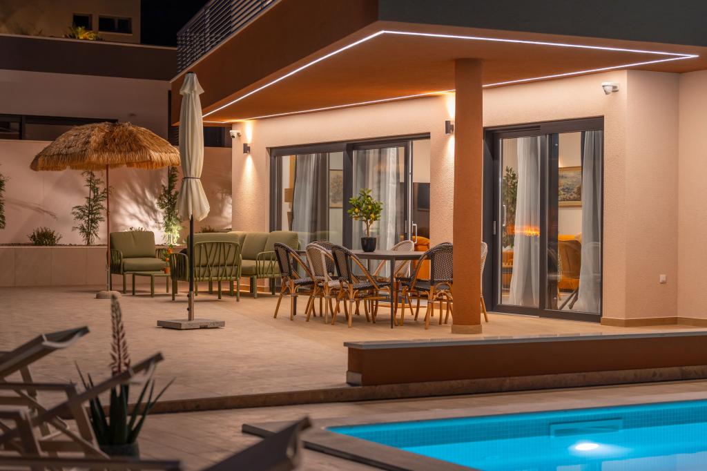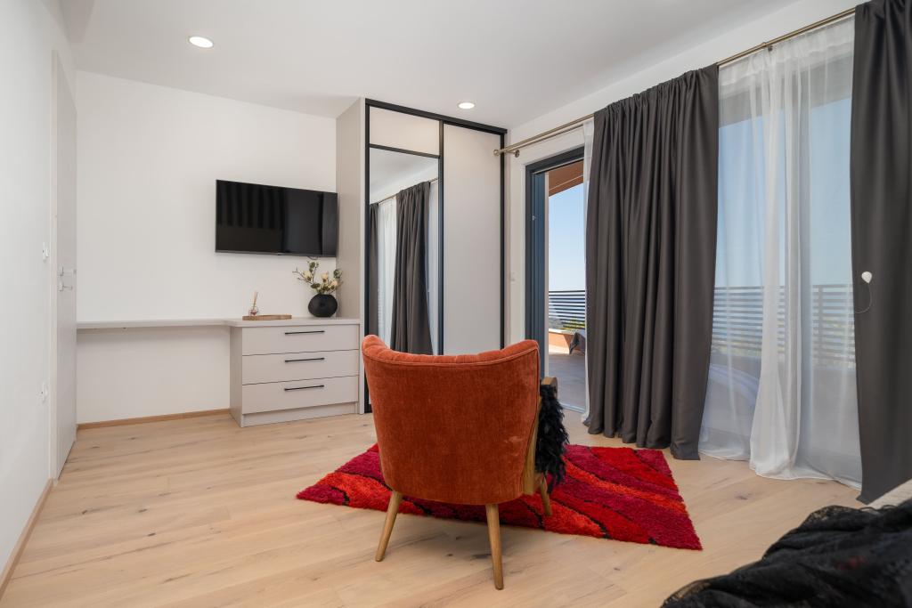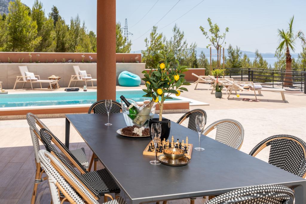 Moderna vila s spektakularnim panoramskim razgledom na azurno morje in velikansko goro Biokovo - prava luksuzna oaza za družine ali skupine do 8 srečnežev! Uživajte v zasebnem bazenu za osvežilno kopanje, žaru za nepozabne večere in prostornem zunanjem salonu, ki je kot nalašč za sprostitev, romantične trenutke ali vesele družinske večerje pod zvezdami. Vaše sanje v Dalmaciji vas čakajo!