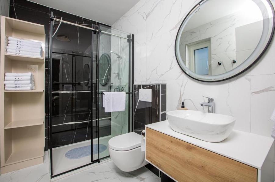 Apartma Aura se nahaja v Malinski na otoku Krku, le 300 m od morja, in je idealen za sproščujoče počitnice. Sodoben in prostoren apartma je sestavljen iz treh spalnic, dnevne sobe, popolnoma opremljene kuhinje ter balkona in terase s pogledom na morje. Gostom so na voljo brezžični internet, klimatska naprava, zasebni bazen in parkirišče. V bližini so številne plaže in znamenitosti, kot so središče Krka in grad Krč (13 km), samostan Košljun (16 km) in marina Punat (17 km), zaradi česar je ta lokacija popolna kombinacija miru in udobja.