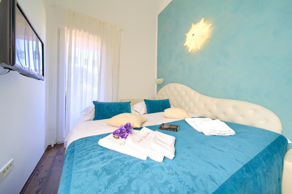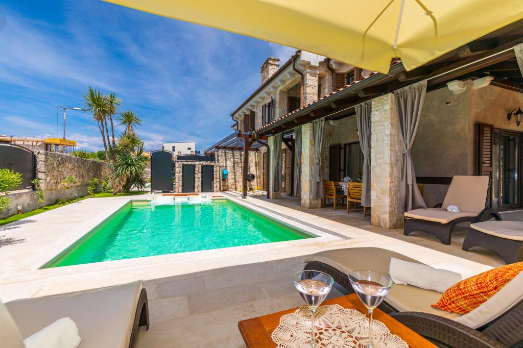 Razkošna vila Bernarda se nahaja v Poratu blizu Malinske. Sprejme lahko 6-7 oseb in ima tri spalnice ter dve kopalnici, razporejene v dveh nadstropjih. V pritličju se nahaja dnevna soba z raztegljivim kavčem za eno osebo, kuhinja z jedilnico, shramba in stranišče. V prvem nadstropju so tri dvoposteljne spalnice, dve kopalnici s tušem in dodatno stranišče. V prostornem zunanjem prostoru se nahaja zasebni ogrevan bazen, pokrita terasa, prostor za žar, zunanji tuš in veliko prostora za uživanje! Parkirno mesto je zagotovljeno.