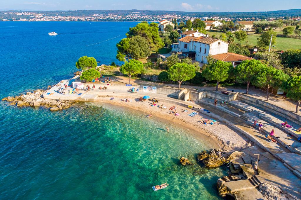 Nahaja se le 200 m od morja in ponuja idealno priložnost za sprostitev na čudoviti plaži Uhić ali uživanje v ogrevanem bazenu, ki ponuja tudi vodno masažo. V bližini so urejene pohodniške poti, kolesarjenje ob obali zaliva pa je poseben užitek. Ob koncu prijetnega dne lahko večer preživite v sprehodu ob obali ali pa uživate v okusnem obroku in kozarcu dobrega krškega vina v eni od bližnjih restavracij. Pričakali vas bomo s pijačo dobrodošlice. Pišite nam za ponudbo.