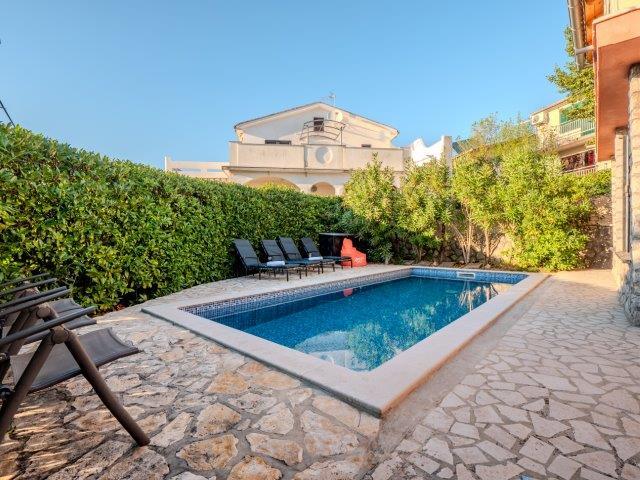 Popolnoma opremljena vila z bazenom v bližini centra Malinske - otok Krk. center in vse dobrine so oddaljene nekaj sto metrov. restavracije so v bližini. pokrito parkirišče na dvorišču. klima in peč na pelete. Idealno za dopust. Mir in prijetno bivanje.