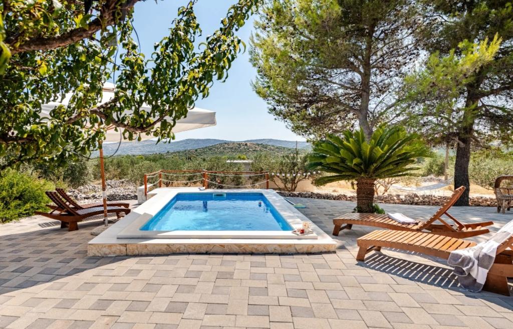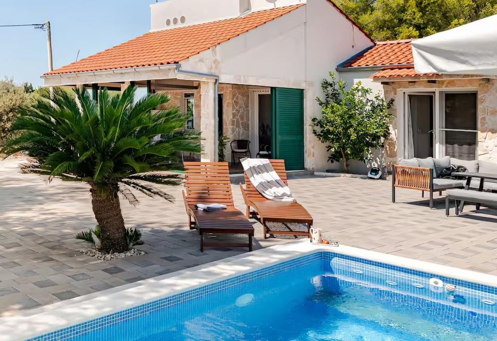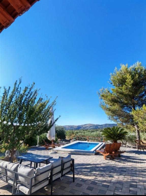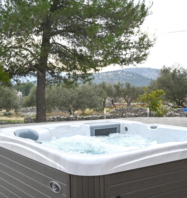 **Zasebna hiša z ogrevanim bazenom in jacuzzijem – samo 3 KM OD MORJA (Marina, Trogir)** **Iščete mir, zasebnost in prave počitnice brez gneče? **Naša počitniška hiša v vasi Najevi ponuja prav to – obdana z oljkami in naravo, a le nekaj minut vožnje od morja, restavracij in kavarn. **ZAKAJ IZBRATI TO HIŠO:** **ZASEBNI BAZEN (ogrevanje in hlajenje) ** JACUZZI / VROČA KAD (36–38 °C) ** SAMO 3 KM OD MORJA IN MARINE ** POPOLNA ZASEBNOST – brez neposrednih sosedov ** MIRNA LOKACIJA, idealna za sprostitev ** IDEALNO ZA 2–6 OSEB **Nastanitev:** Hiša ima tri udobne spalnice, popolnoma opremljeno kuhinjo in prijetno dnevno sobo za sprostitev. Dve spalnici se nahajata v pritličju, tretja pa se nahaja na podstrešju in je dostopna po zložljivih podstrešnih stopnicah. Ta soba ponuja poseben in intimen prostor, idealen za starejše otroke ali odrasle (zaradi dostopnosti ni priporočljiva za majhne otroke ali starejše).