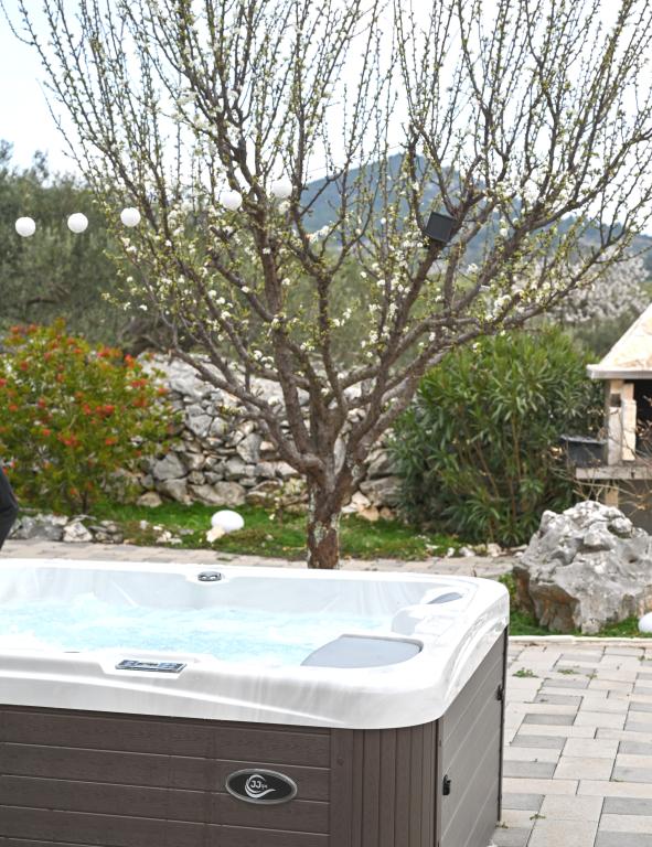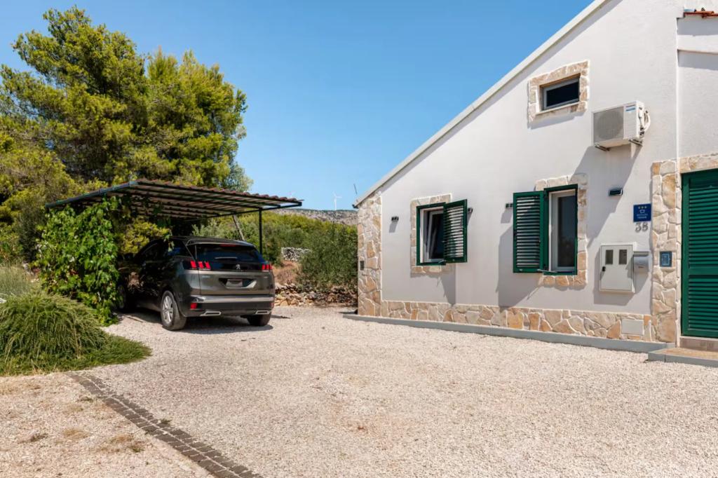 Ena spalnica v pritličju ima svojo kopalnico in ločen vhod, kar zagotavlja dodatno zasebnost. Zunanji prostor: Uživajte v zasebnem bazenu, ki ga je mogoče ogrevati ali hladiti – idealen za uporabo od pomladi do jeseni. Po dnevu na plaži se sprostite v jacuzziju pod zvezdami. Na voljo je pokrita zunanja jedilnica za uživanje v obrokih na prostem, pa tudi več sončnih in senčnih kotičkov, obdanih z oljkami – idealno za kozarec vina in popoln mir. Lokacija: Hiša se nahaja v mirni vasi Najevi, le 3 km od marine in morja. V bližini so plaže, restavracije in trgovine, hkrati pa imate popolno zasebnost in tišino. ***Cena: 170 € – 310 € na noč (odvisno od obdobja)*** Za povpraševanja in rezervacije nas prosimo kontaktirajte preko sporočila ali WhatsAppa.