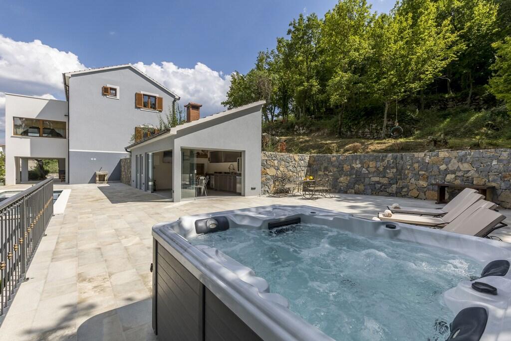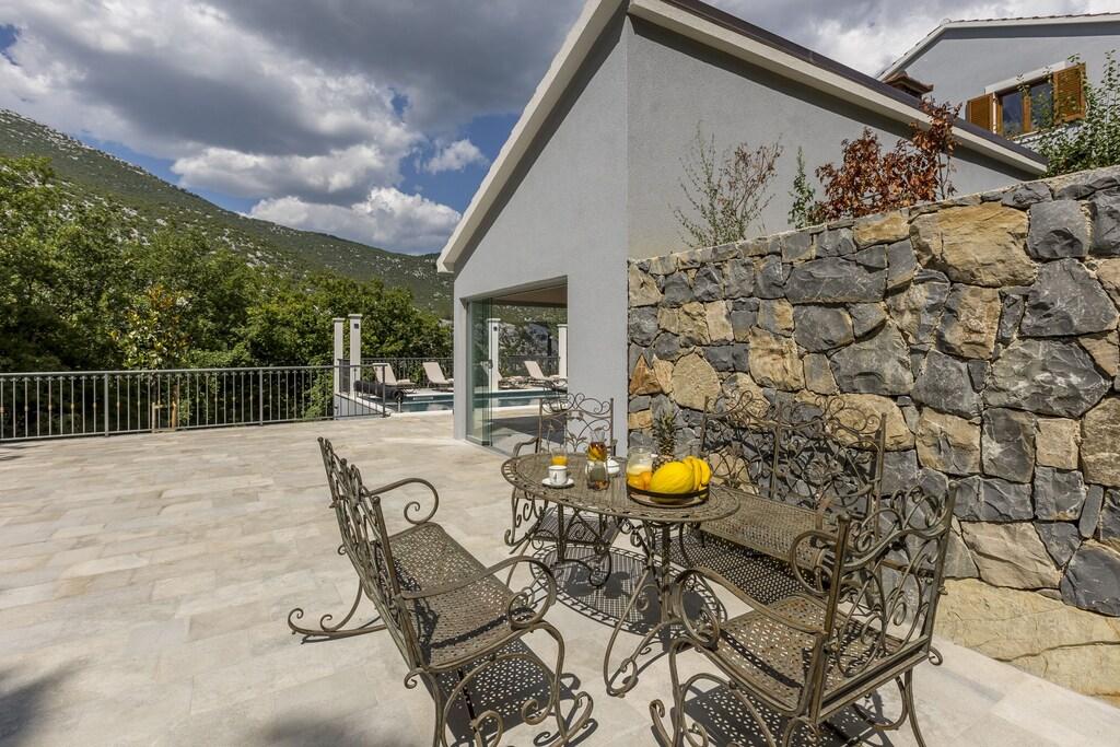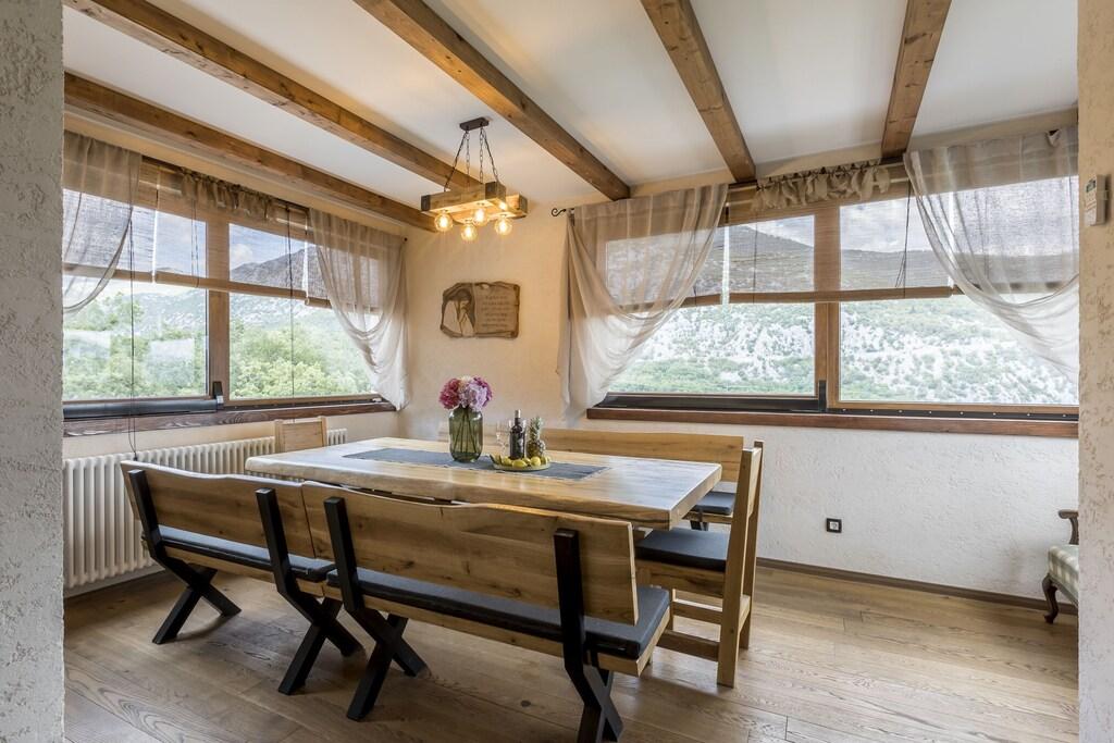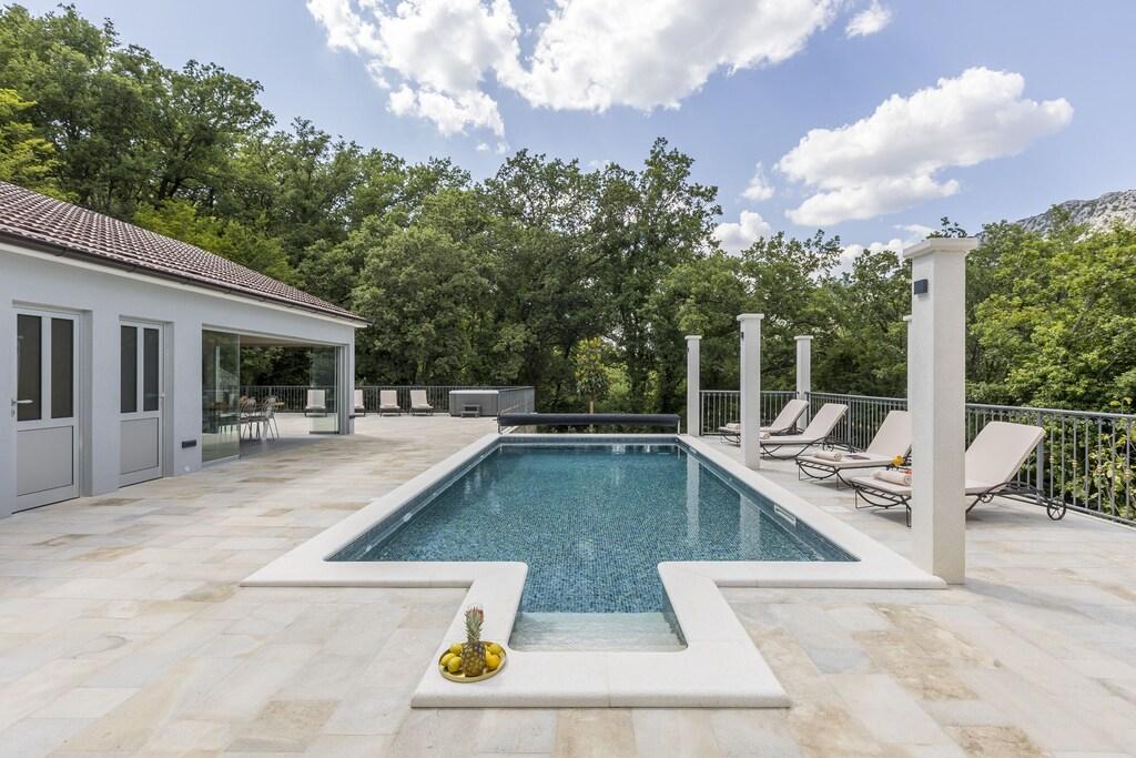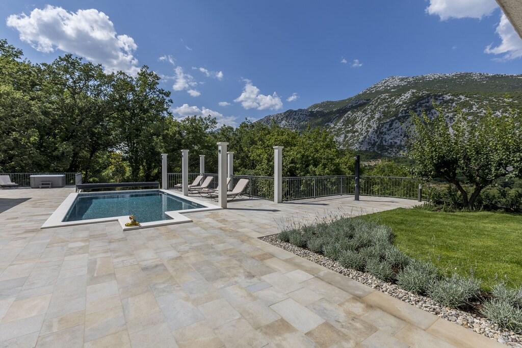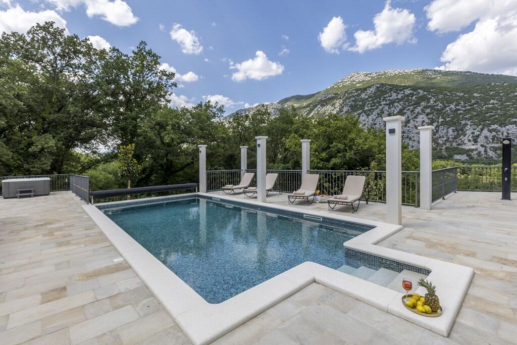 Popolna in na novo prenovljena vila z bazenom, savno, letno kuhinjo in 4-sobno hišo. Vsaka soba ima svojo kopalnico, dnevno sobo, jedilnico in kuhinjo. Hiša se nahaja v majhni vasici Zvečanje, 10 minut od avtoceste Blato na Cetini. Omiš je oddaljen, 15 min z avtom, Split 35 min, Makarska 25 min.