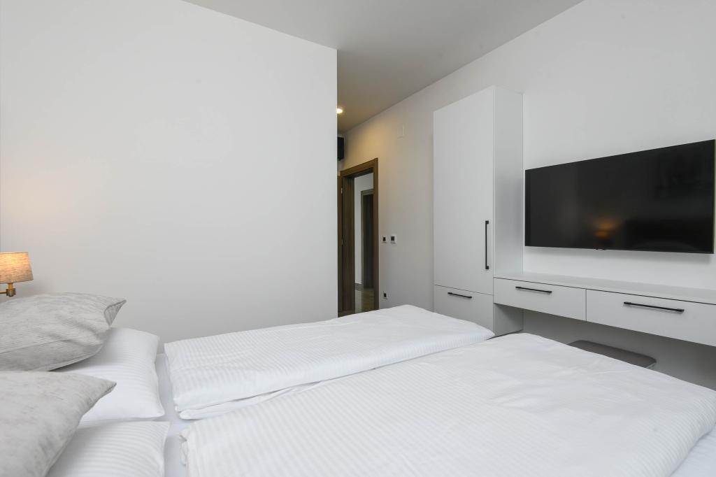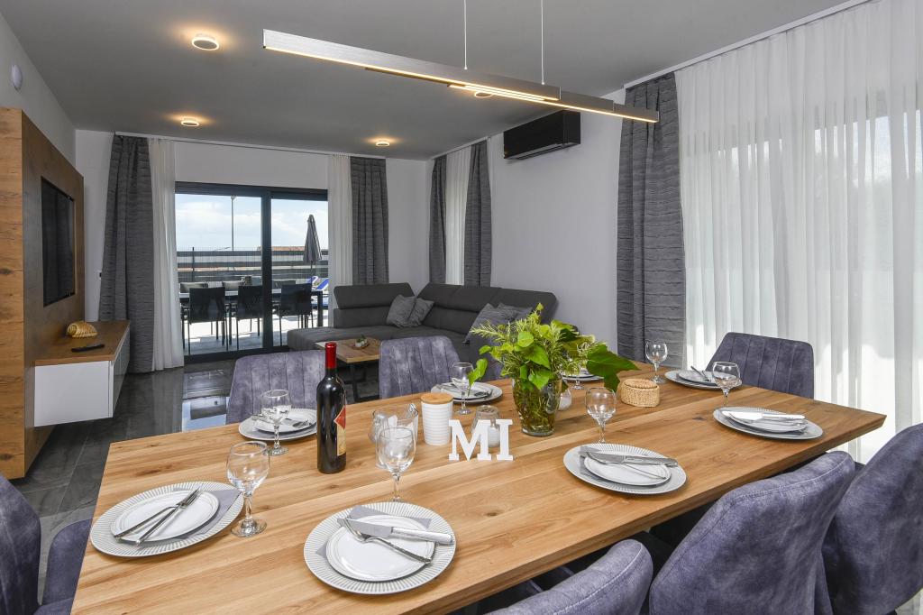Ta dom ponuja dodatno raven razkošja, kot je: B. v obliki več prostora in udobja, notranje opreme ali stila, arhitekture, opreme ali izkušenj. Ta elegantna počitniška hiša z zasebnim bazenom je na odlični lokaciji. Nahaja se v bližini čudovite plaže Trstenica z drobnim peskom in prodniki. V pritličju je velika kuhinja in dnevna soba, spalnica z lastno kopalnico in dodatno kopalnico, pralnica in dvojna garaža. Notranje stopnice vodijo v 1. nadstropje, kjer so še tri spalnice s kopalnicami in delovna soba (pisarna). Vsaka spalnica vodi na čudovit balkon s čudovitim pogledom na morje. Zunaj se lahko ohladite v bazenu, sprostite v lastnem jacuzziju in savni, medtem ko se otroci zabavajo na otroškem igrišču. V kleti je fitnes in rekreacijski prostor. Orebić je majhno mesto, a dovolj veliko, da vam ponudi vse, kar potrebujete na počitnicah, od restavracij do trgovin. Lahko se odpravite tudi na dnevne izlete v Dubrovnik in na otok Korčulo.