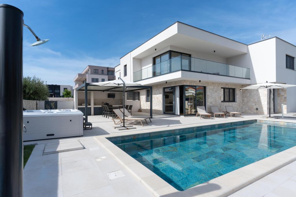 Posebnosti te vile so zasebni ogrevan bazen, jacuzzi in prostorna poletna terasa. Prestižna vila COMPADRE se nahaja v mirni obmorski vasici Mandre na otoku Pag in ponuja 4 moderno opremljene spalnice ter 4 kopalnice s tušem. Popolnoma opremljena kuhinja vključuje štedilnik, hladilnik, pomivalni stroj, pečico in vse potrebne kuhinjske pripomočke. Gostje lahko uživajo na zunanjem žaru, se sprostijo na udobnem sedežnem kotu ali pa se sprostijo ob bazenu in masažni kadi. Klimatizirana vila ponuja tudi televizijo z ravnim zaslonom, pralni stroj, zaseben vhod, minibar in pogled na vrt. Ta vila, idealna za družine ali skupine, združuje razkošje in udobje na 230 m² elegantnega bivalnega prostora.
