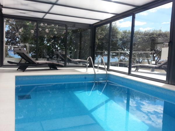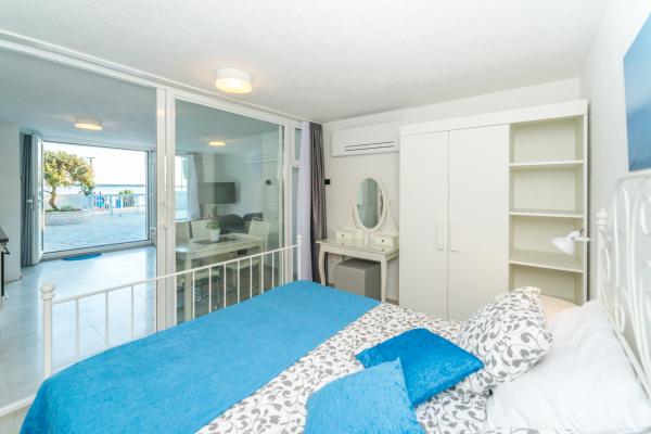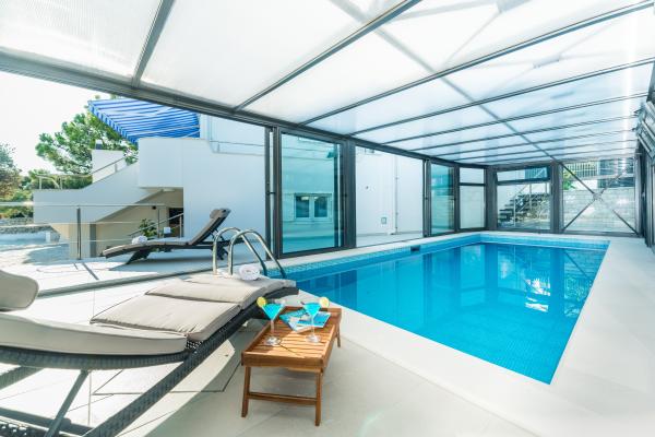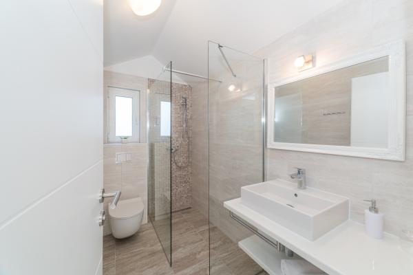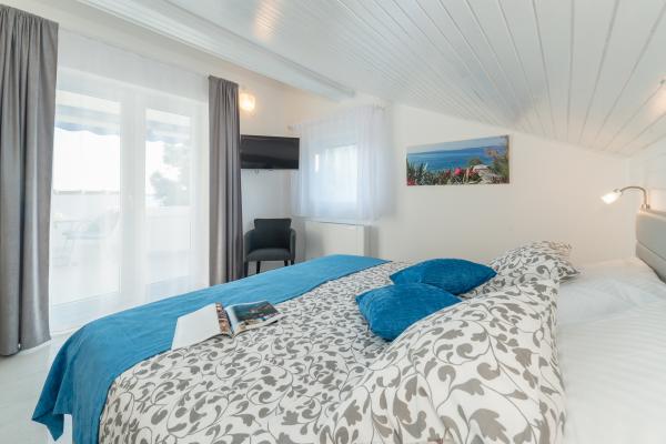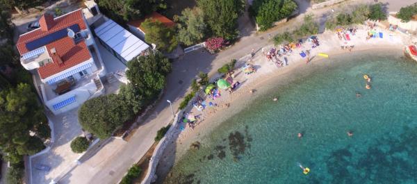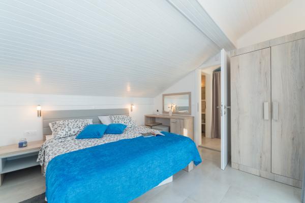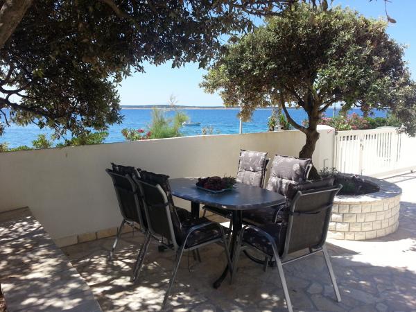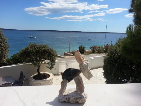 Prijetna in popolnoma moderno opremljena vila z bazenom v Mandrah, otok Pag, 70 km od Zadra. Od centra mesta je oddaljen 120m. Pred vilo je čudovita dolga plaža iz drobnih kamenčkov, ob kateri se razteza sprehajališče. Vila je idealna za sproščujoče počitnice z družino in prijatelji. Vse terase vile ponujajo neustavljiv pogled na kristalno morje in otoke. Na dvorišču se nahaja notranji, ogrevan bazen s protitočnim plavanjem in masažo, zunanji tuš in prostor za sončenje s pogledom na morje ter prostor za počitek v senci borovcev. Vila ima tri etaže (pritličje, nadstropje in mansarda), sprejme 12 oseb. V vsaki etaži je ena stanovanjska enota z lastnim vhodom, SAT/TV, hlajenje. Vsaka enota ima kuhinjo, jedilnico, dnevno sobo in teraso s pogledom na morje. Enota v pritličju ima dve spalnici (4 osebe), kopalnico in wc. V nadstropju sta dve spalnici, kopalnica, WC in še ena spalnica z lastno kopalnico (6 oseb). V mansardi je ena spalnica (2 osebi) in kopalnica