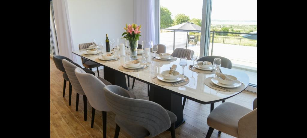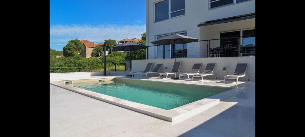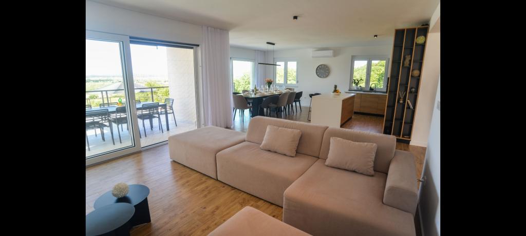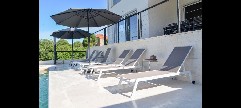 Vila za najem z bazenom – Pakoštane/Vrana (do 10 oseb)** Oddamo luksuzno trinadstropno vilo s 5 spalnicami in 3 kopalnicami, idealno za družine ali skupine. Nahaja se v mirnem delu Pakoštanov, v bližini Vranskega jezera in le 5 minut vožnje od plaže. Vila ponuja zasebni bazen s hidromasažo, strešno teraso s pogledom na morje in jezero, zunanji žar, popolnoma opremljeno kuhinjo, Wi-Fi, Smart TV, klimatsko napravo in pralni stroj. Na voljo sta tudi brezplačno parkirišče in košarkarski koš. Posebnost vile je njena lokacija - blizu plaž, restavracij in drugih vsebin, a hkrati dovolj odmaknjena, da zagotavlja mir in zasebnost. **Kapaciteta:** 10 oseb **Cena:** Po dogovoru, odvisno od datuma in števila oseb. Veselimo se vašega prihoda!