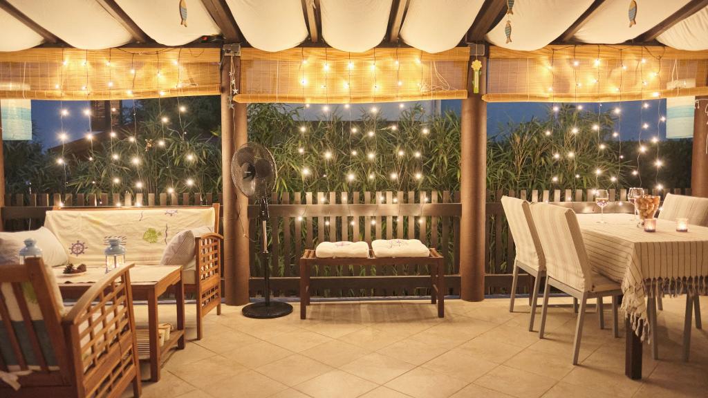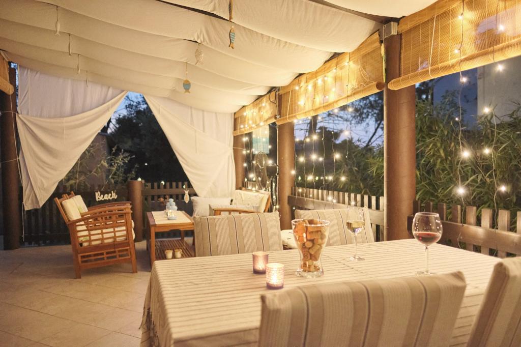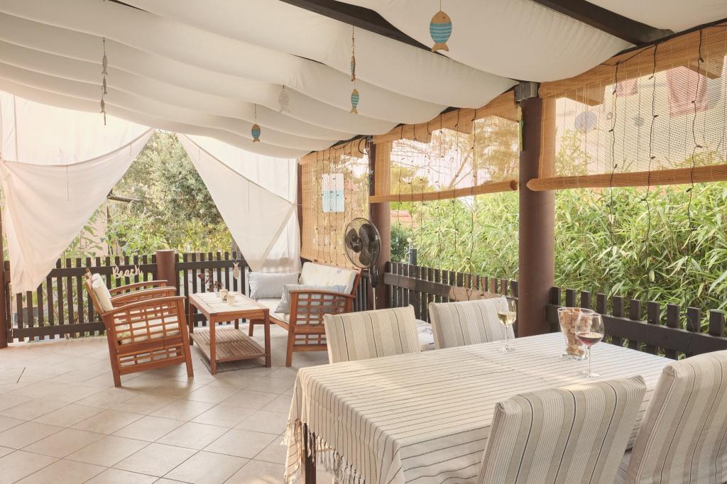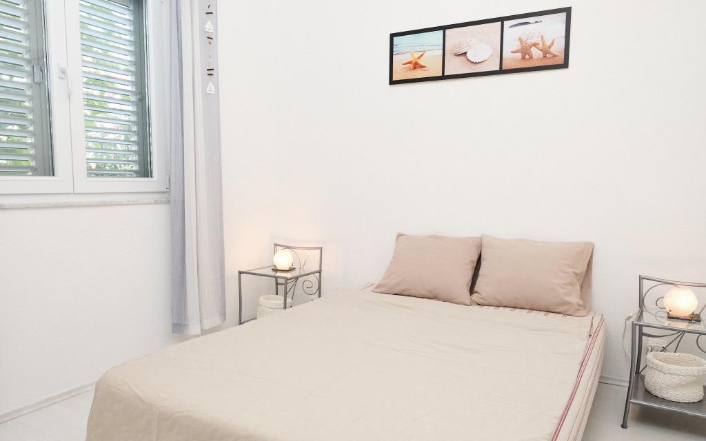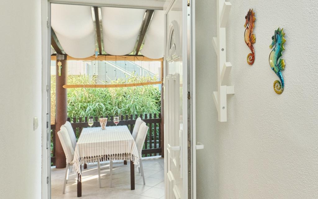 Na voljo imate parkirno mesto na dvorišču, skrito stransko teraso z žarom in shrambo z ležalniki in drugo opremo ter vrt za hišo. Pred teraso je vrtni tuš na sončno energijo. V poletnih mesecih (od sredine junija do sredine/konca avgusta) lahko hiša sprejme do 6 oseb (v 3 spalnicah), izven glavne sezone pa je število gostov omejeno na 4 osebe in le 2 spalnici. Cena vključuje vse turistične stroške, WiFi internet (neomejen dostop), parkiranje, elektriko in ostale komunalne storitve, na voljo pa sta tudi posteljnina in brisače.