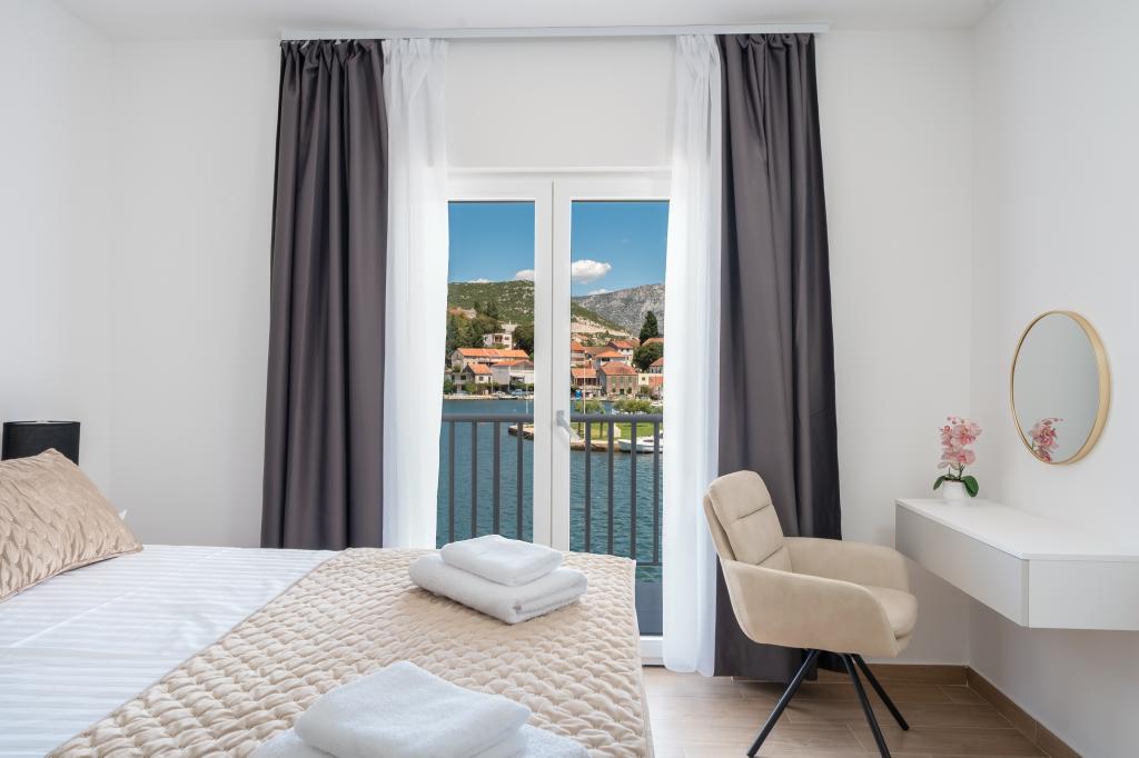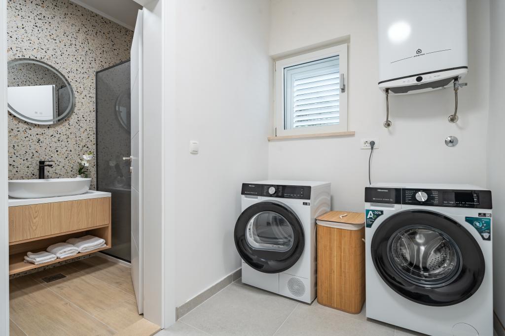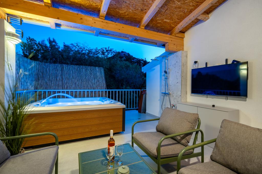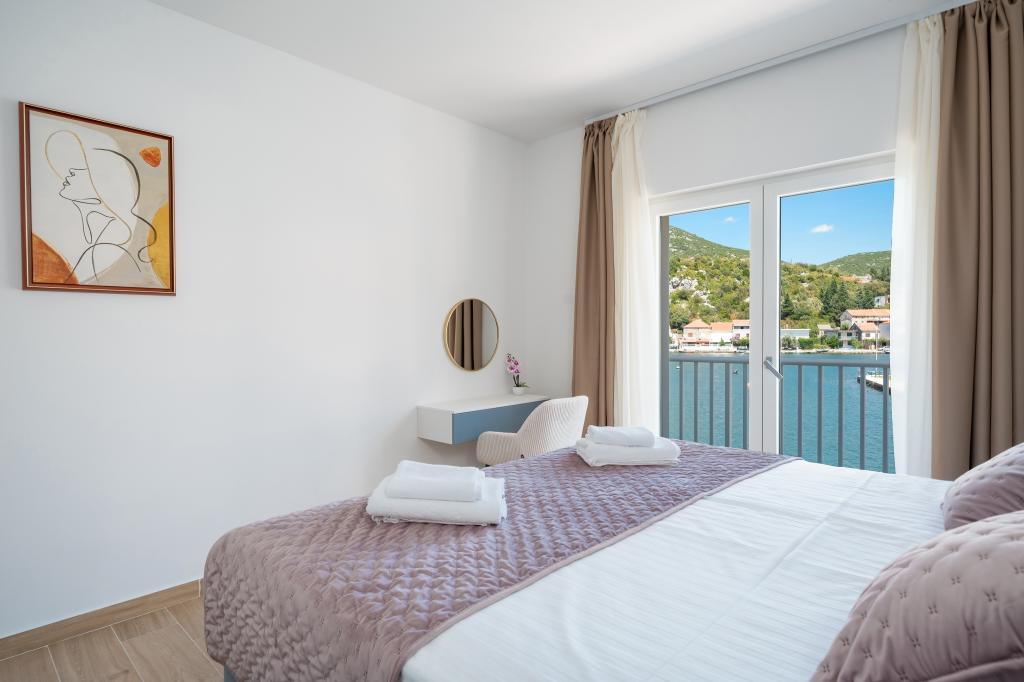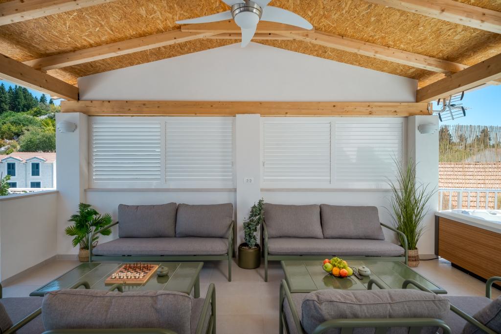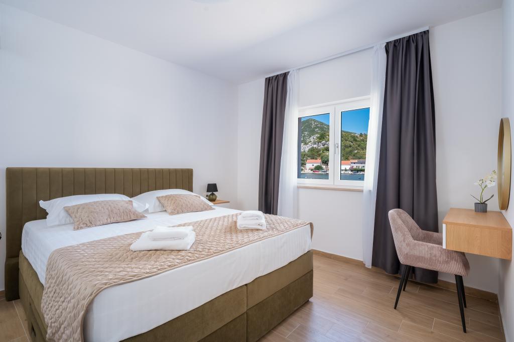 Popolnoma in moderno opremljena vila, kjer bivate samo vi, z ogrevanim jacuzzijem, 3 m od morja in 30 m od plaže. Vila ima teraso z zunanjo jedilnico in zasebnim kaminom, 4 sobe po 15 m2, vse klimatizirane in imajo čudovit razgled ter dostop do balkona. Na strehi je 110 m2 velika terasa z zunanjim tušem, ogrevanim jacuzzijem ter prostorom za sedenje in druženje. S terase in balkona je čudovit razgled na zaliv in mesto. Vila ima brezplačen brezžični internet in brezplačno zasebno parkirišče. Kuhinja je opremljena z vsemi gospodinjskimi aparati. Vila se nahaja 32 km od slapa Kravica. 42 km od vile je Hrib prikazovanj v Međugorju, 10 km od vile pa so Bačinska jezera in ustje Neretve, idealno za deskarje.