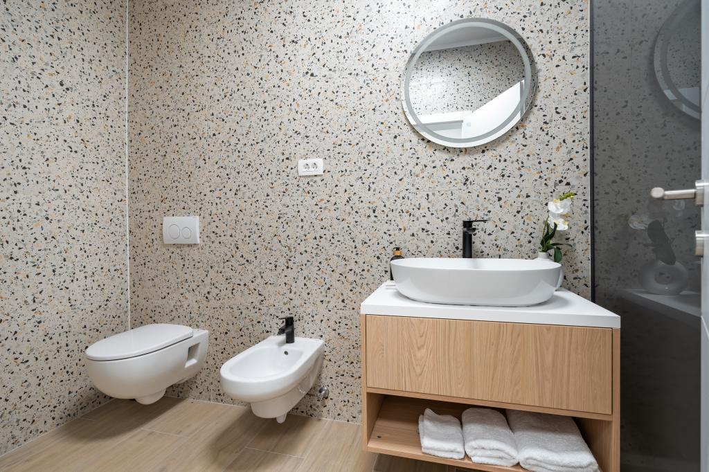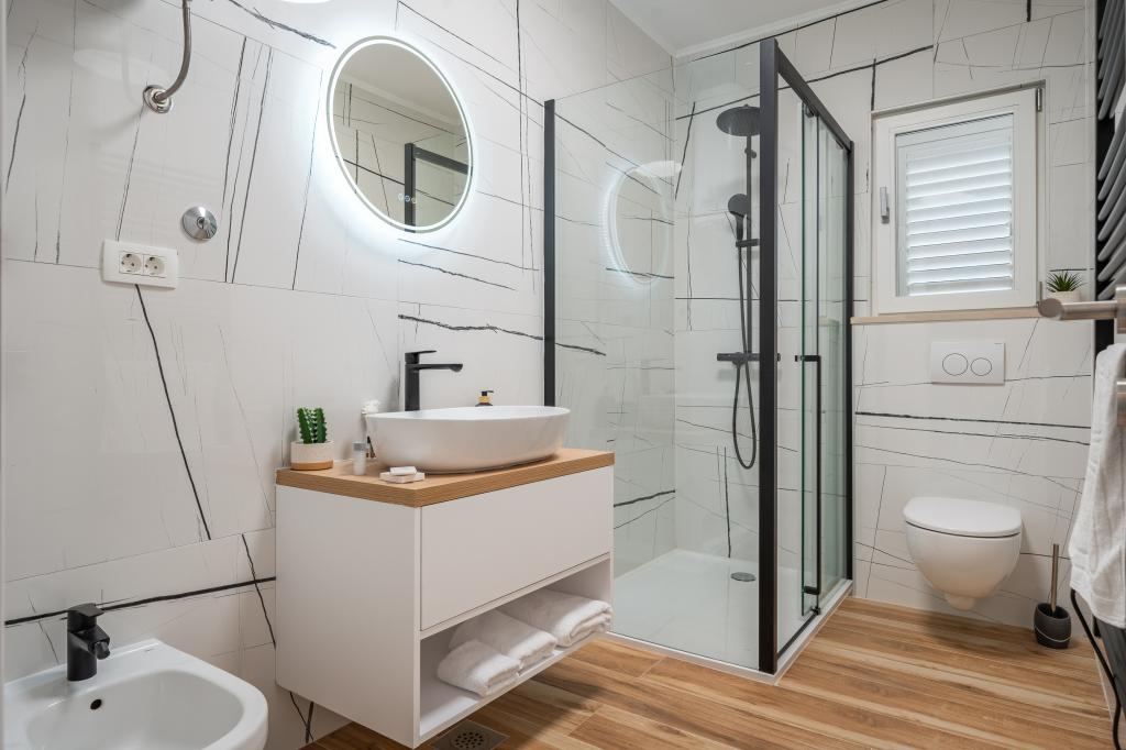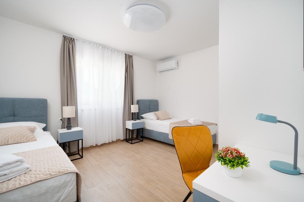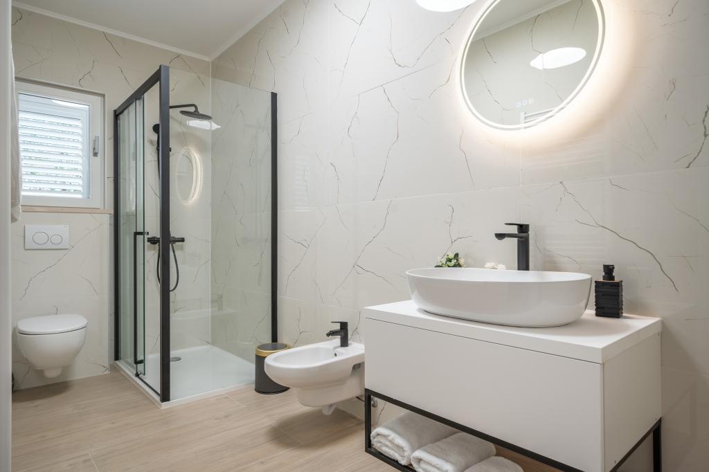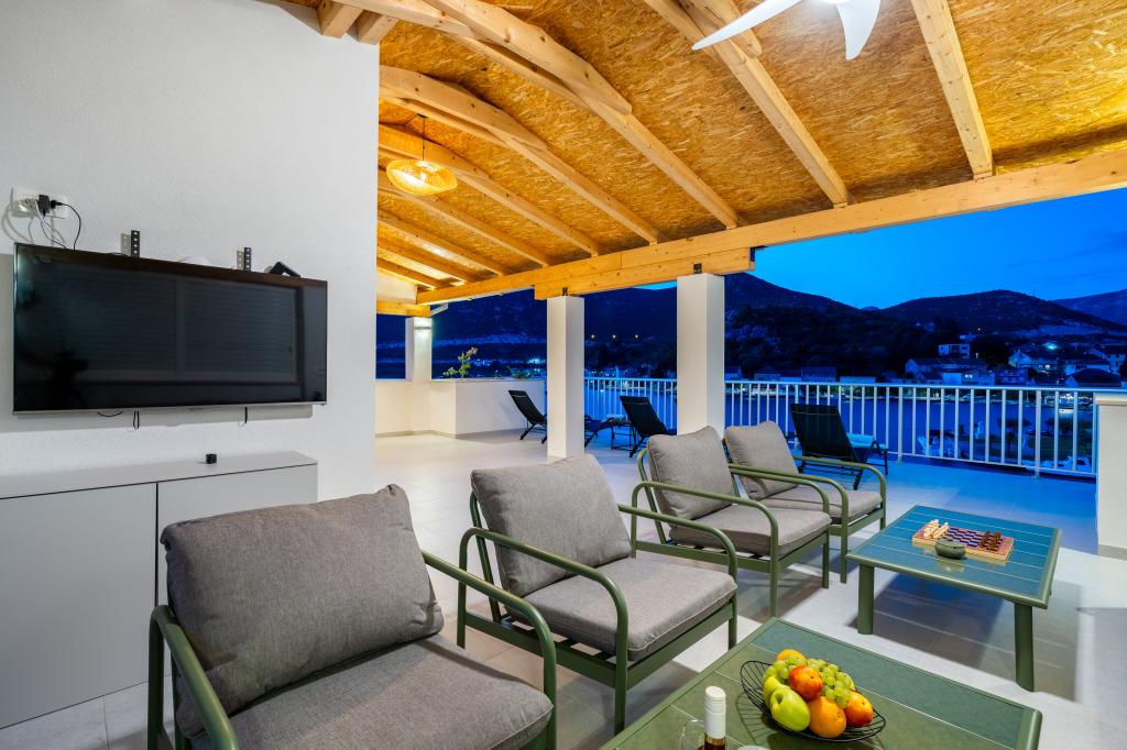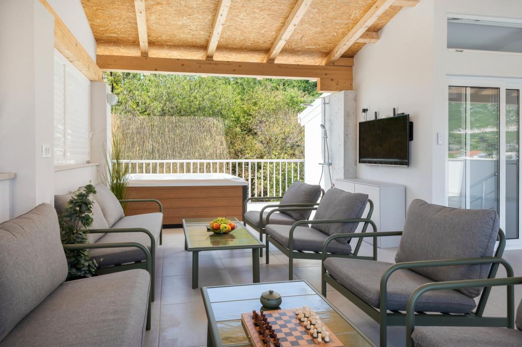 Popolnoma in moderno opremljena vila, kjer bivate samo vi, z ogrevanim jacuzzijem, 3 m od morja in 30 m od plaže. Vila ima teraso z zunanjo jedilnico in zasebnim kaminom, 4 sobe po 15 m2, vse klimatizirane in imajo čudovit razgled ter dostop do balkona. Na strehi je 110 m2 velika terasa z zunanjim tušem, ogrevanim jacuzzijem ter prostorom za sedenje in druženje. S terase in balkona je čudovit razgled na zaliv in mesto. Vila ima brezplačen brezžični internet in brezplačno zasebno parkirišče. Kuhinja je opremljena z vsemi gospodinjskimi aparati. Vila se nahaja 32 km od slapa Kravica. 42 km od vile je Hrib prikazovanj v Međugorju, 10 km od vile pa so Bačinska jezera in ustje Neretve, idealno za deskarje.