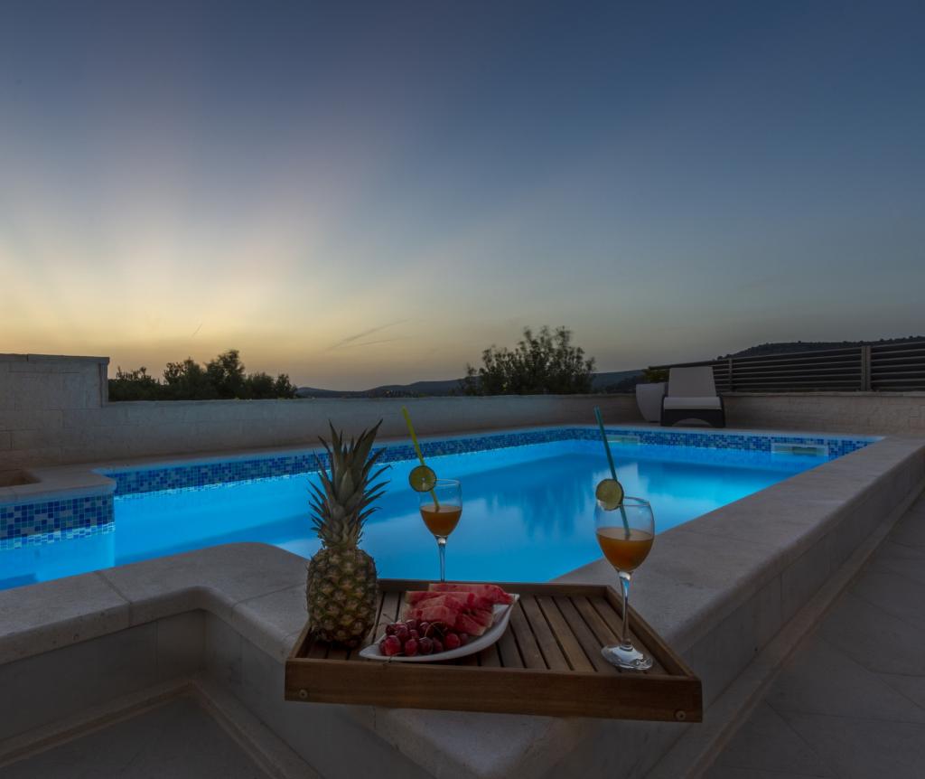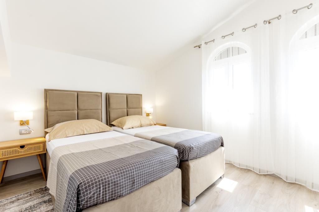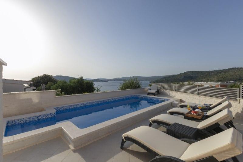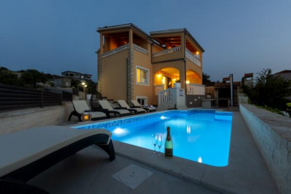 Novo zgrajena počitniška hiša se nahaja na mirni lokaciji, od hrupa in gneče, ki vam daje oazo miru za vaše počitnice s pogledom na kristalno čisto morje. Hiša je sestavljena iz 4 spalnice, 2 kopalnici, kuhinje in dnevne sobe, 2 terase ter balkona s pogledom na jutranji odhod in čarobnega večernega sončnega zahoda. Na dvorišču je ogrevan bazen z masažnimi curki in ležalniki, zunanji tuš in velik žar, ki so samo naši gostje na razpolago in imajo lastno parkirišče.