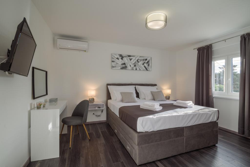 Ta na novo prenovljena družinska hiša, primerna za 7 oseb, se nahaja v bližini Trogirja, v okrožju Seget Donji, v bližini hotela Medena. Hiša se nahaja na 700 m2 veliki parceli in ima 150 m2 bivalne površine. Zunanja kuhinja z mizo za 8 oseb, zunanji WC, velik žar in zasebni bazen vam nudijo vse, kar potrebujete za prijeten in sproščujoč oddih. Celoten prostor je moderno opremljen, klimatiziran in ima brezžični internet. Notranja kuhinja je popolnoma opremljena in vsebuje vse gospodinjske aparate. Hiša ima 3 moderno opremljene, velike spalnice. Vsaka spalnica ima satelitsko televizijo in klimatsko napravo. Večja kopalnica ima kad in pralni stroj. Manjša kopalnica ima tuš kabino. V hiši je tudi majhna telovadnica. Pred hišo je parkirišče za 3 avtomobile. Velika veranda z vrtom vam bo nudila mir in sprostitev, zunanja kuhinja pa je prostor za druženje z družino in prijatelji. Gostom je na voljo celotna hiša in vrt z bazenom.