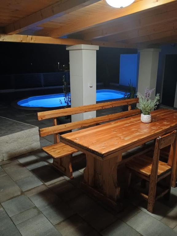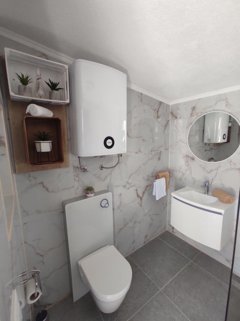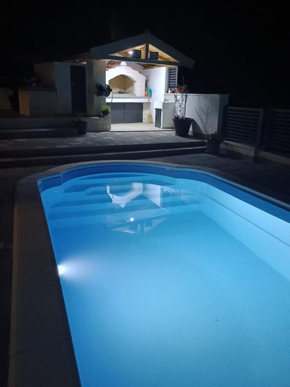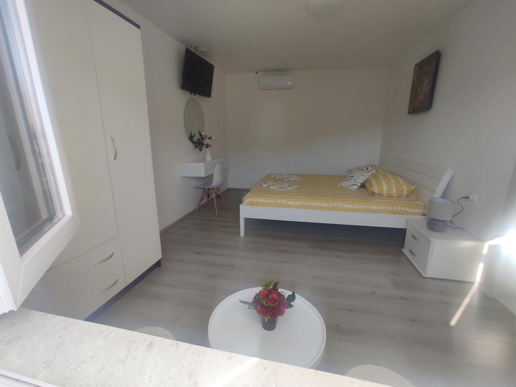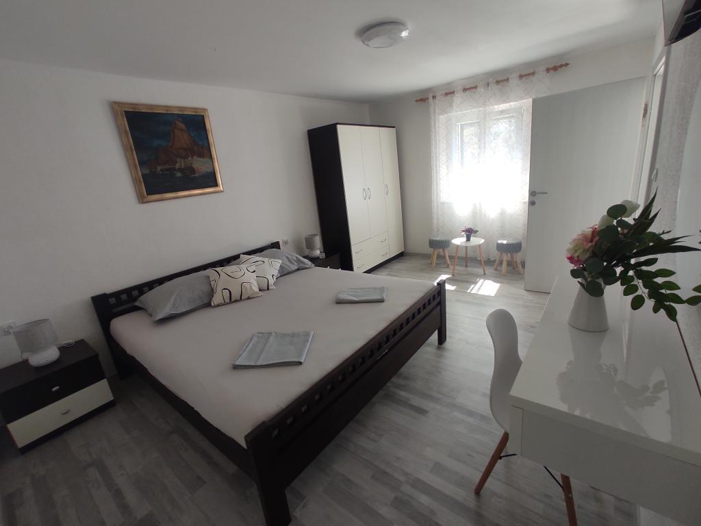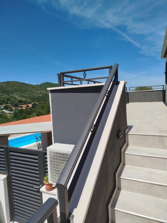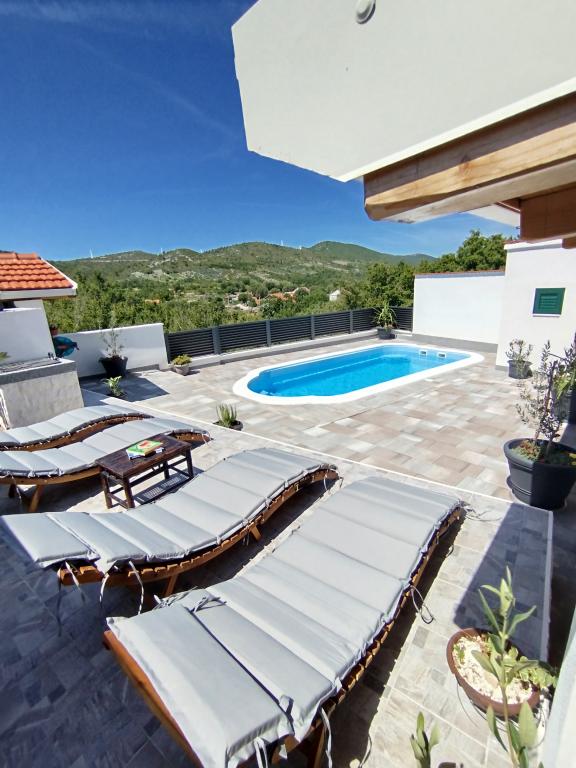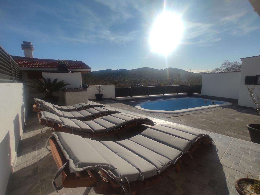Hiša se nahaja v mirni vasici Ljubitovica, 20 km od UNESCO mesta Trogir in 18 km od prve plaže. Če želite uživati v naravi in v zasebnosti, je naša hiša idealna za vas. Hiša je sestavljena iz pritličja in prvega nadstropja, ki sta povezana z zunanjim stopniščem. V pritličju (dvorišče) je ogrevan bazen, zunanji žar, en WC s tušem in v notranjem delu kuhinja (posoda, hladilnik, pomivalni stroj, pečica) s klimatizirano dnevno sobo. V prvem nadstropju sta dve spalnici. Vse sobe so klimatizirane in imajo pametno televizijo. Sobe so dvoposteljne, možno pa je tudi eno dodatno ležišče za eno osebo (v vsaki sobi). Na zahtevo, brez doplačila, je možno gostom zagotoviti potovalno posteljico. Med spalnicama je WC s tušem in pralnim strojem (brisače so na voljo). Pred sobo je velika terasa. Zagotovljeno je parkirišče ter zunanja letna garnitura za počitek in obedovanje (pokriti del dvorišča).
