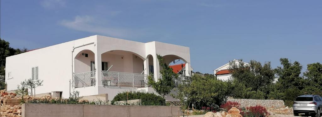 Hiša se nahaja v mirnem naselju, 100 m od morja. Obdan z naravo ponuja fantastičen pogled na morje in otoke. Idealen je za dve družini (6 2);