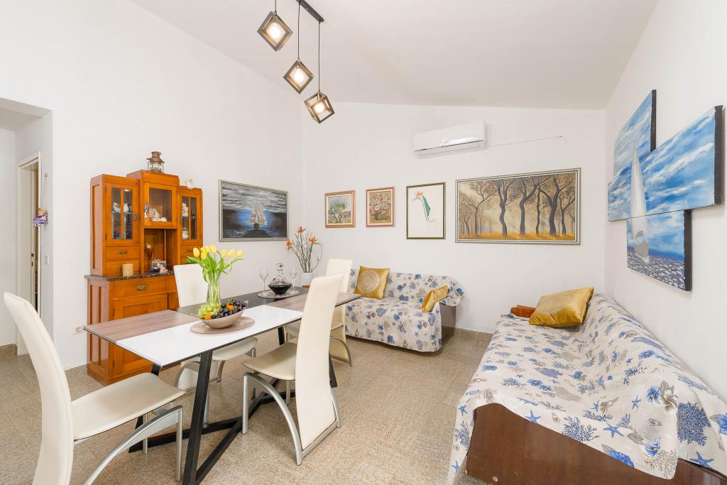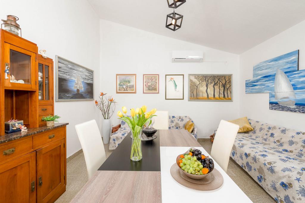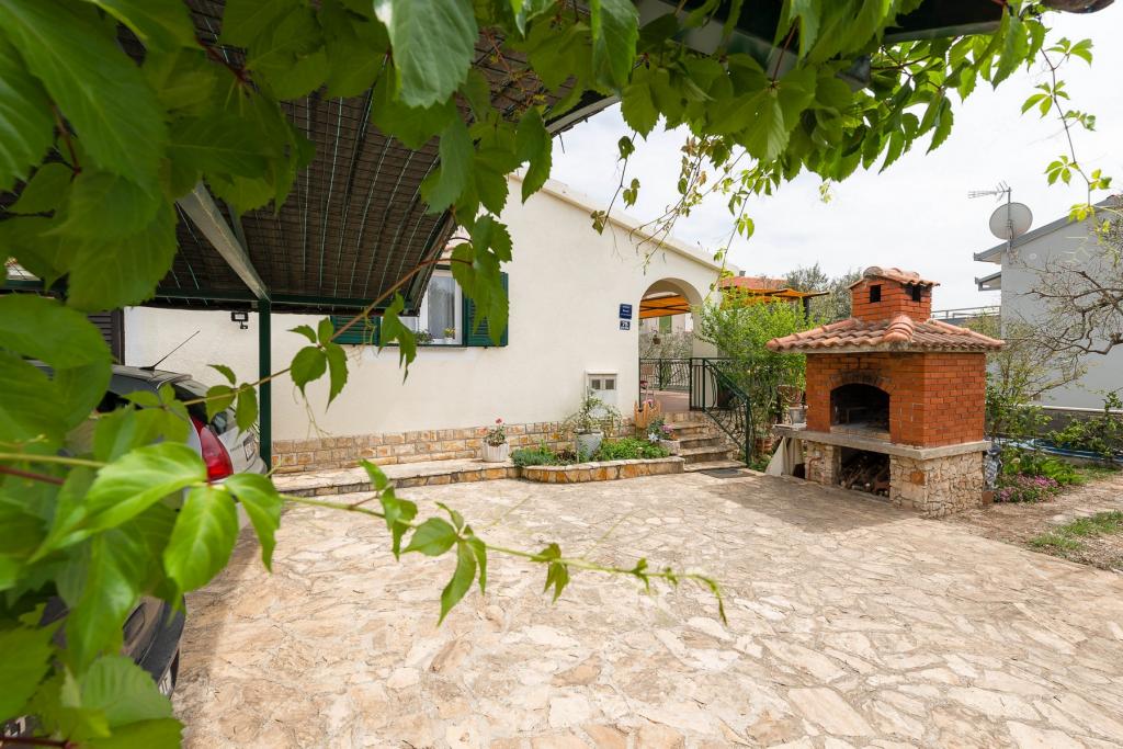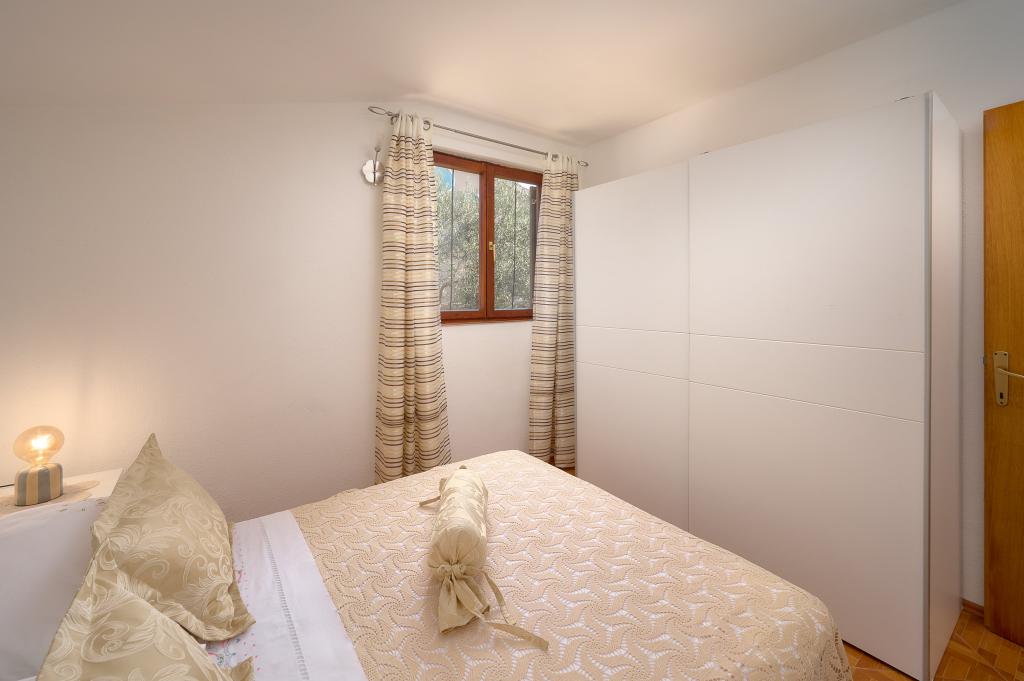 Ta vila ponuja popolno kombinacijo udobja in naravnega okolja, idealno za družine ali skupine prijateljev, ki iščejo pobeg od vsakdanjega življenja. Hiša ima tri prostorne spalnice, zračno in elegantno urejeno dnevno sobo, dve popolnoma opremljeni kuhinji in dve kopalnici. Dodaten užitek nudi velika terasa s pogledom na zelenje, pokrito parkirišče in prostorno dvorišče, polno oljk in bujnega mediteranskega rastlinja. Za ljubitelje kulinaričnih podvigov je na voljo žar, za vaše udobje pa so na voljo brezplačen WiFi, klimatska naprava in satelitska TV.