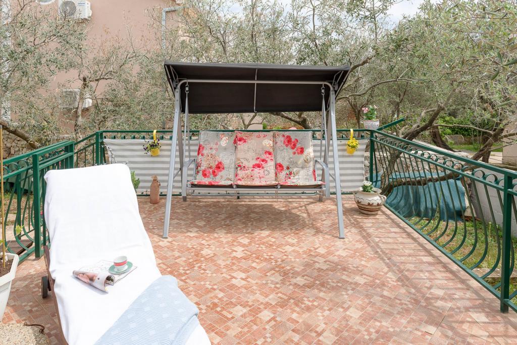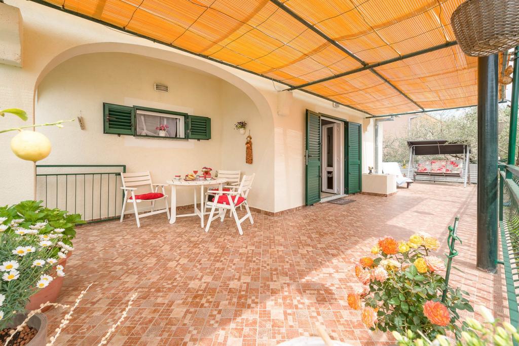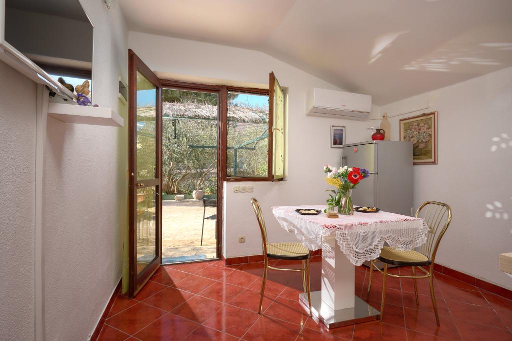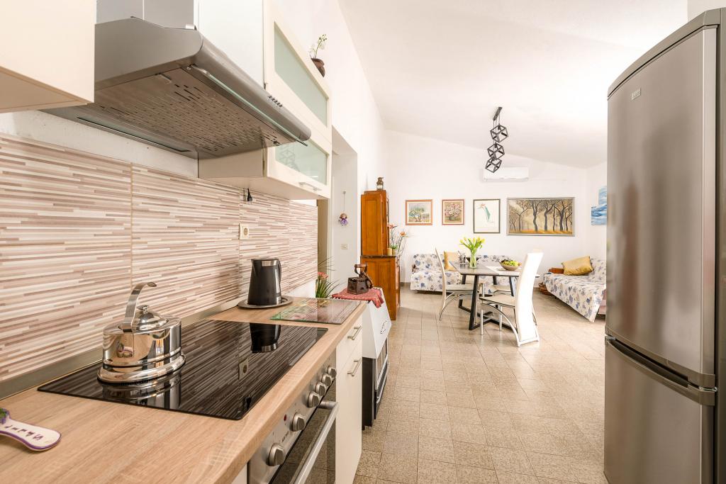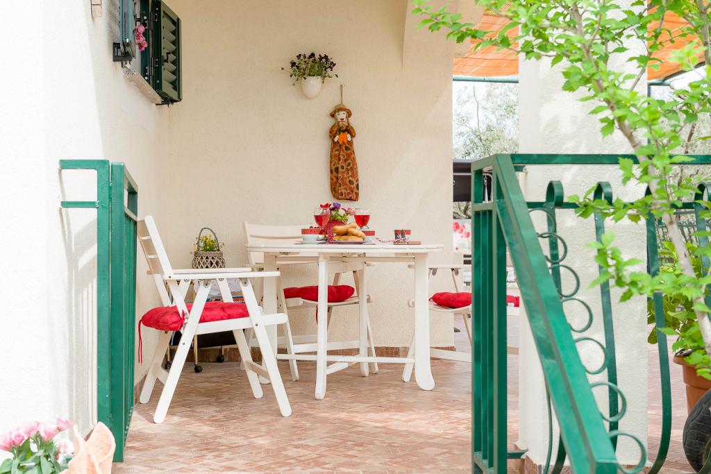 Ta vila ponuja popolno kombinacijo udobja in naravnega okolja, idealno za družine ali skupine prijateljev, ki iščejo pobeg od vsakdanjega življenja. Hiša ima tri prostorne spalnice, zračno in elegantno urejeno dnevno sobo, dve popolnoma opremljeni kuhinji in dve kopalnici. Dodaten užitek nudi velika terasa s pogledom na zelenje, pokrito parkirišče in prostorno dvorišče, polno oljk in bujnega mediteranskega rastlinja. Za ljubitelje kulinaričnih podvigov je na voljo žar, za vaše udobje pa so na voljo brezplačen WiFi, klimatska naprava in satelitska TV.