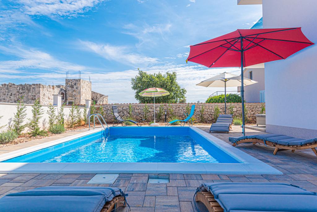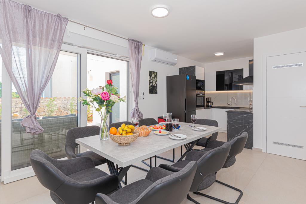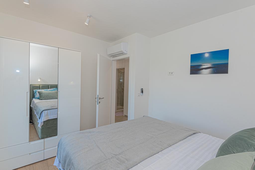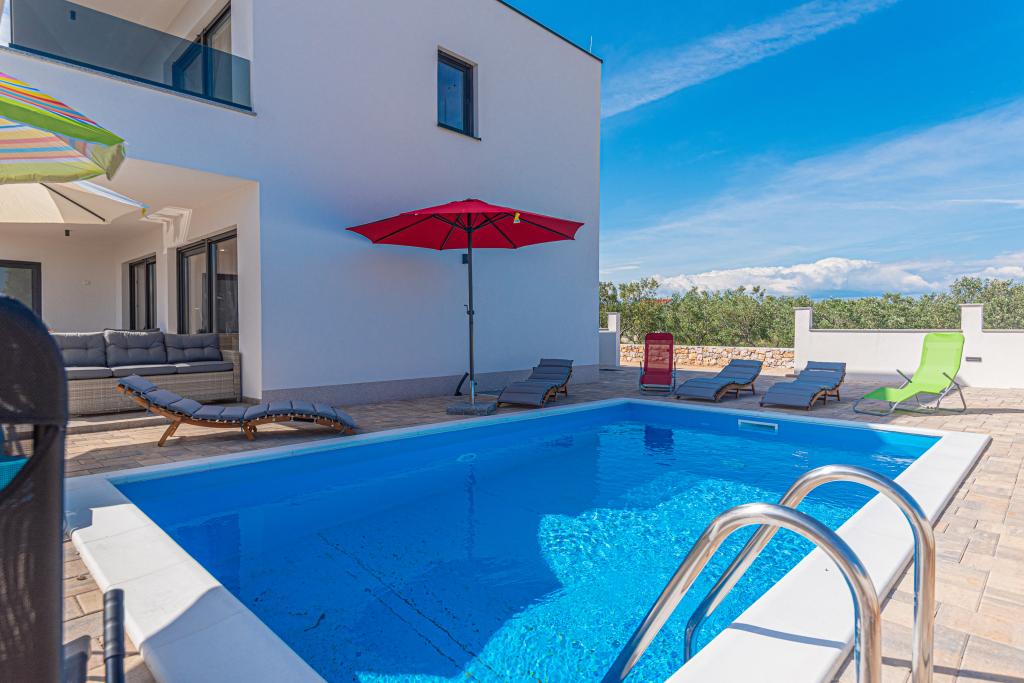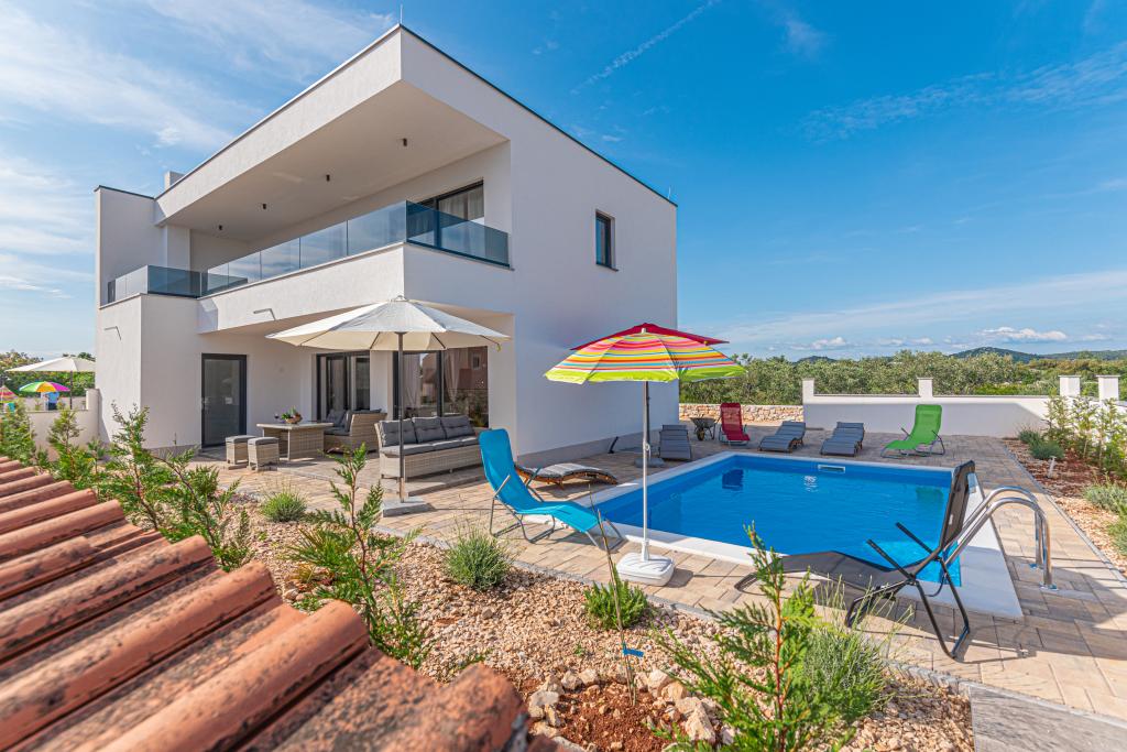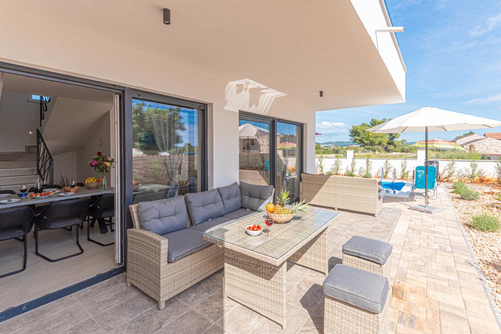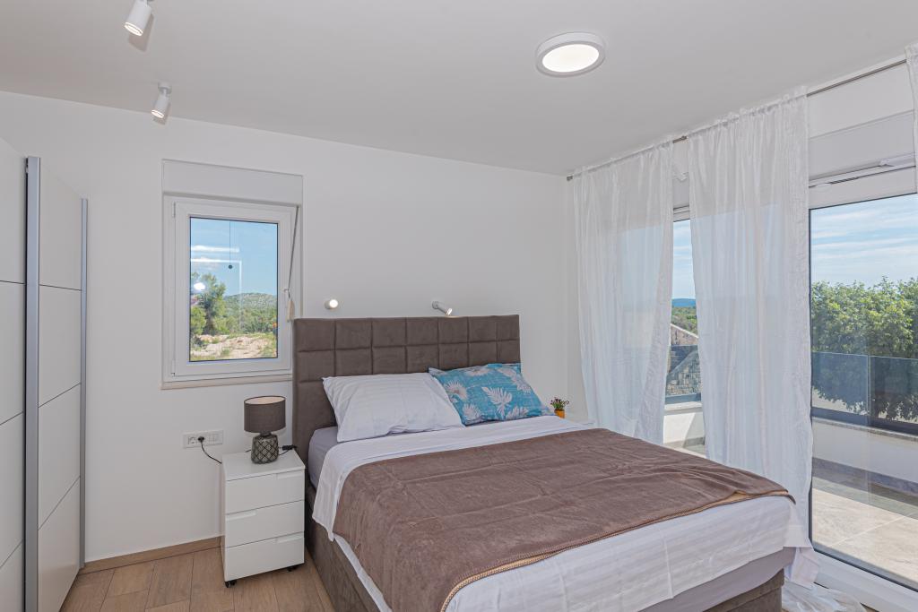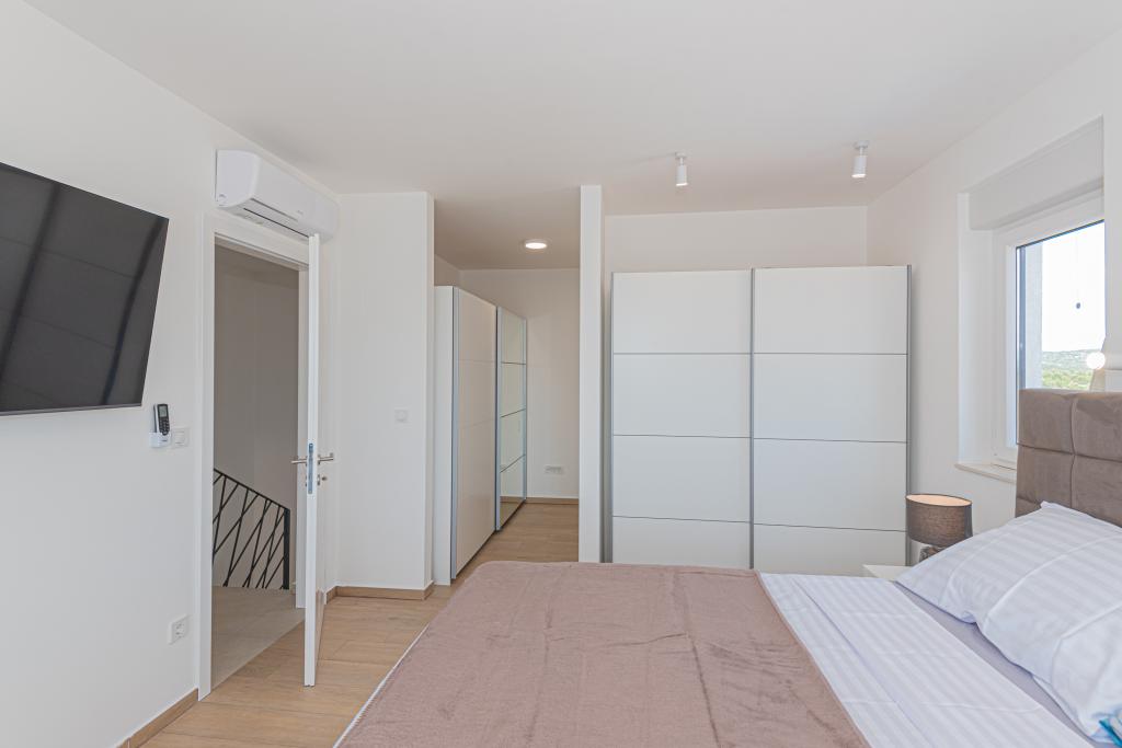 Vila Adriatic Sunrise – Mirne počitnice v bližini Šibenika Uživajte v sprostitvi v Villi Adriatic Sunrise, čudoviti počitniški hiši z ogrevanim zasebnim bazenom in klimatiziranimi sobami, ki je idealna za pobeg od vsakdanjega življenja. Ta prostorna vila se nahaja v bližini zgodovinskega mesta Šibenik in ponuja čudovit razgled z velike terase, idealne za uživanje na soncu in v mirnem okolju. Vila je sestavljena iz štirih elegantno opremljenih spalnic, udobne dnevne sobe in treh televizorjev z ravnim zaslonom za vašo zabavo in sprostitev. Kuhinja je popolnoma opremljena s pomivalnim strojem in pečico, kar vam omogoča, da uživate v pripravi obrokov. Tri moderne kopalnice s tuši v pritličju zagotavljajo razkošje in udobje ves čas vašega bivanja. Zunanji prostor je idealen za uživanje na svežem zraku, pa naj bo to sprostitev ob obroku v zunanji jedilnici ali osvežilno plavanje v bazenu. Vila ponuja brezplačno zasebno parkirišče, brezplačen brezžični internet ter sveže brisače in posteljnino za popolno udobje.