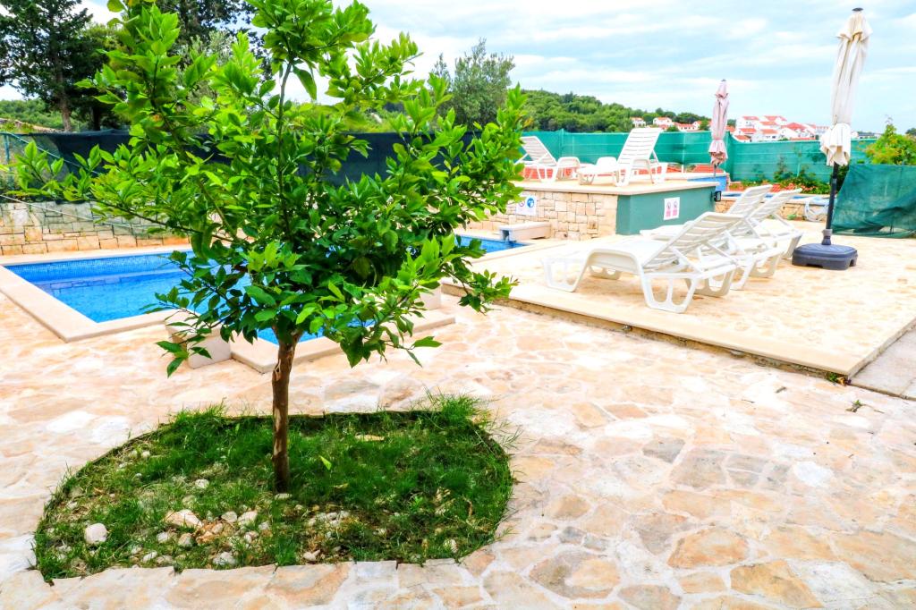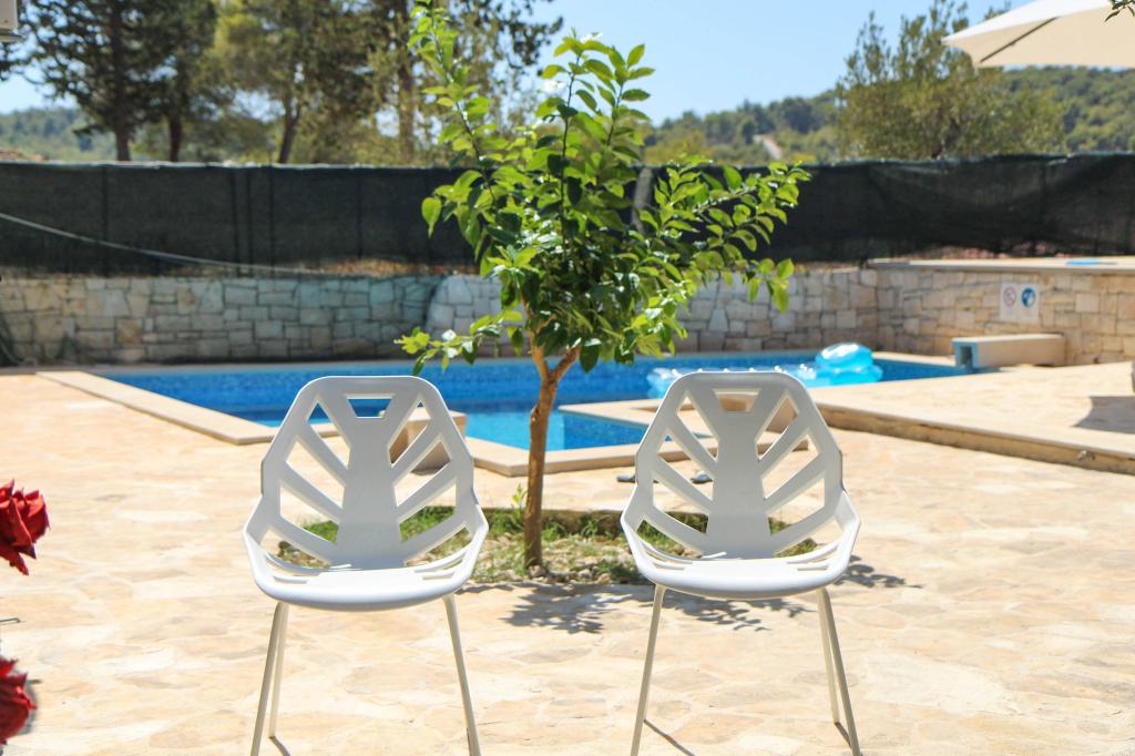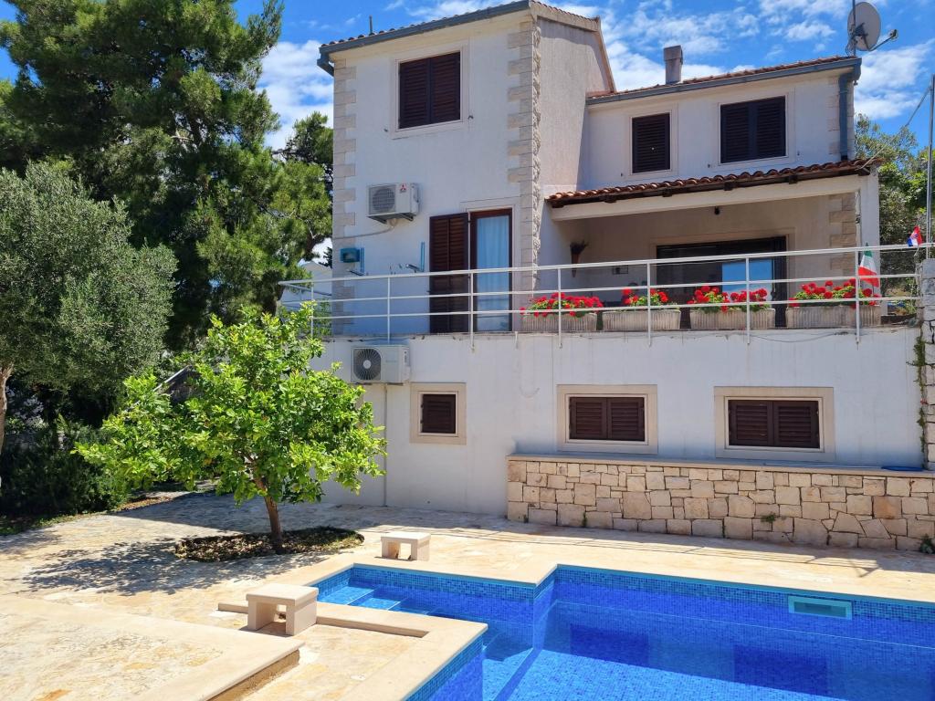 Vila Dvornik zagotavlja popolno zasebnost v udobni namestitvi za družine z otroki, študentske skupine in družinska srečanja več generacij. Ima pogled na morje in je od morja in plaže oddaljen le 300 metrov. Bivalna površina 110 m2 + terasa 25 m2, velik vrt 280 m2 pokrit s kamnitimi ploščami, s 4 sobami (8 postelj) in dvema bazenoma. Velik bazen s 4 masažnimi šobami velikosti 24 m2 in globine 1,5 m za odrasle ter manjši bazen za majhne otroke velikosti 3,5 m2 in globine 0,5 m Oba bazena sta ogrevana s pomočjo 10 m2 sončnih kolektorjev, ki omogočajo temperatura bazena 21 °C maja in oktobra. Zunanji tuš in žar se nahajata v okolici hiše. Hiša je klimatizirana in ima dostop do brezžičnega interneta. V okolici hiše so zagotovljena tri parkirna mesta. Hišni ljubljenčki so dobrodošli.
