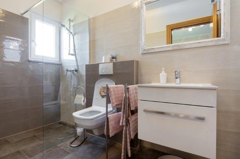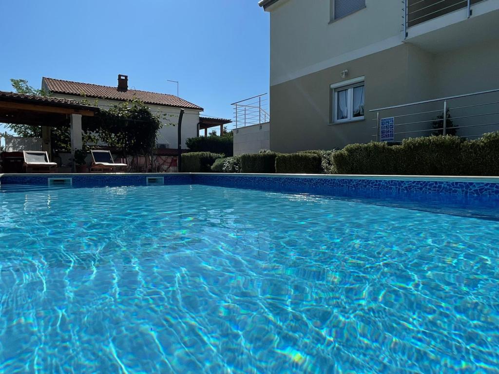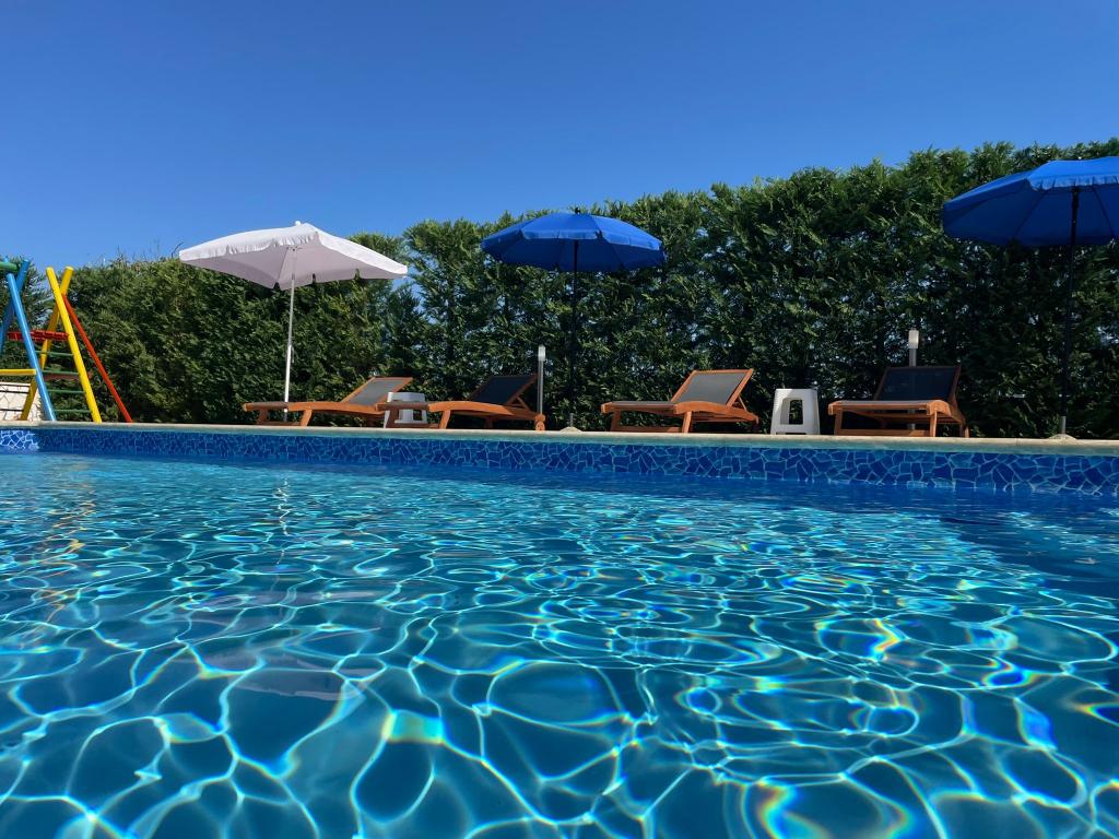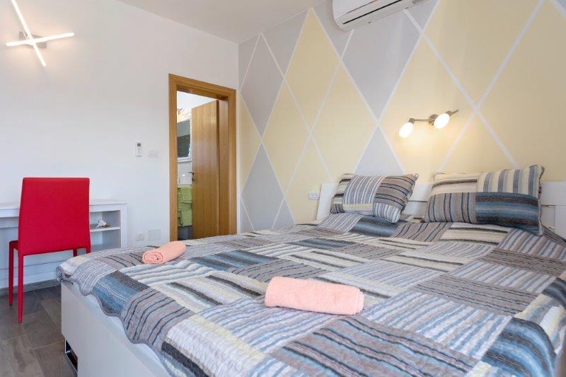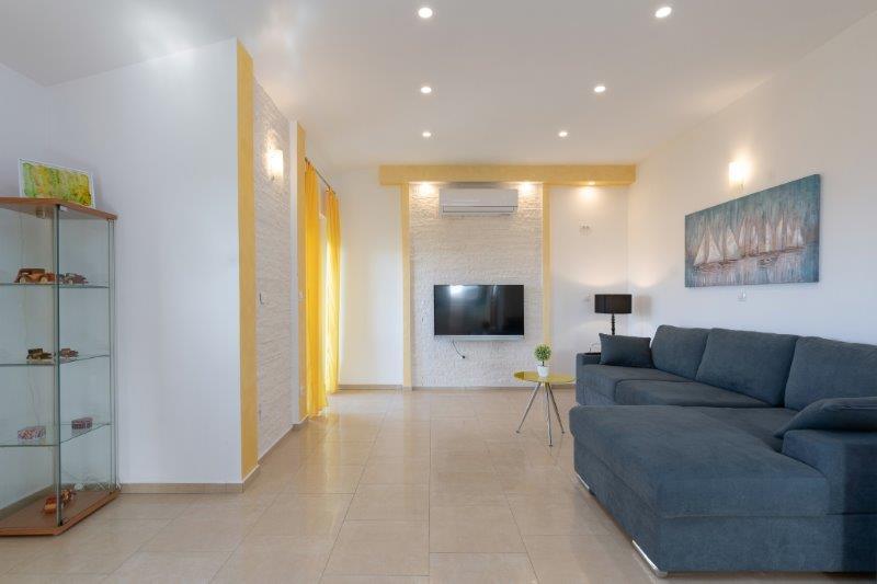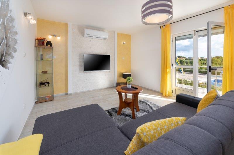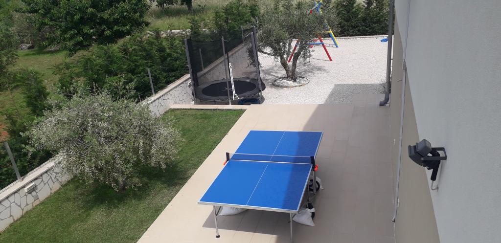 Nahajamo se v mestecu Kaštelir, 10 km od Poreča. Hiša je sestavljena iz dveh ločenih apartmajev, enega v pritličju, drugega v prvem nadstropju, hiša se oddaja kot celota. Vsak apartma je sestavljen iz dnevne sobe, kuhinje, dveh spalnic, vsaka s svojo kopalnico. Vsak apartma ima 3 klimatske naprave, eno v dnevni sobi in eno v vsaki sobi. Apartma je opremljen z vsem potrebnim za prijetno bivanje. Zunaj je otroško igrišče z gugalnicami, trampolinom in mizo za namizni tenis. Dvorišče je popolnoma ograjeno, tako da lahko pripeljete svojega psa, zaračunamo 12 eur na dan za pse. Zunaj imamo tudi bazen 8*4m, ležalnike, senčnike in letno kuhinjo z žarom. Pred apartmajem imamo 6 parkirnih mest, od tega sta 2 pokriti zaradi drugih obveznosti pri nas v juliju in avgustu možna rezervacija samo od nedelje do nedelje, v ostalih mesecih pa je minimalno 5 dni in čas prihoda je lahko katerikoli dan v tednu. Hiša je idealna za 8 oseb, lahko pa sprejme tudi 10 oseb. Za dodatno osebo imamo doplačilo 25 € na osebo.