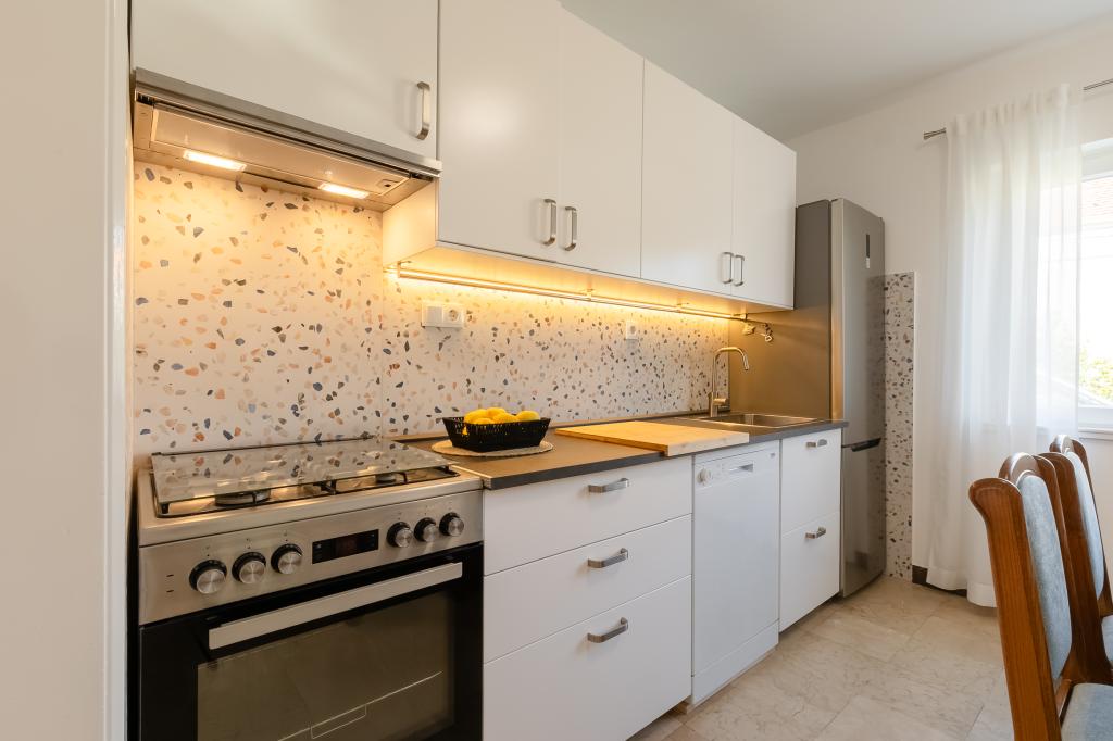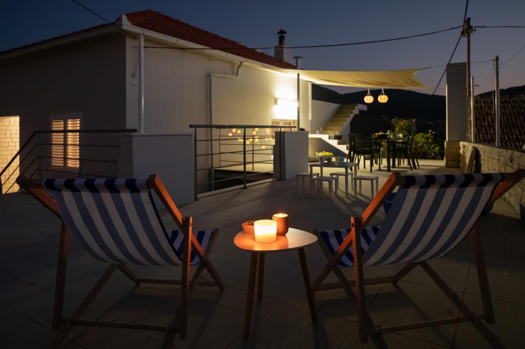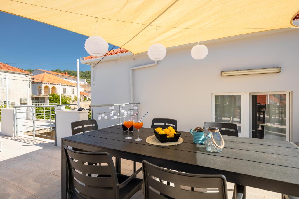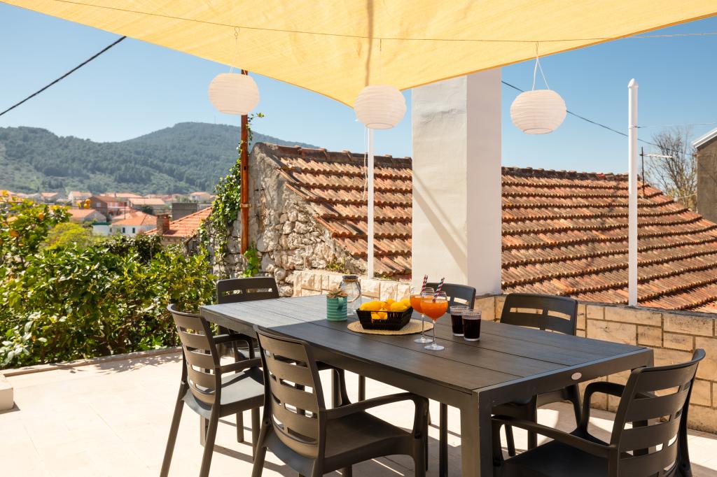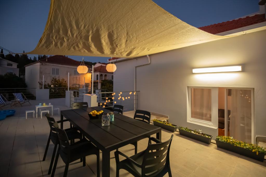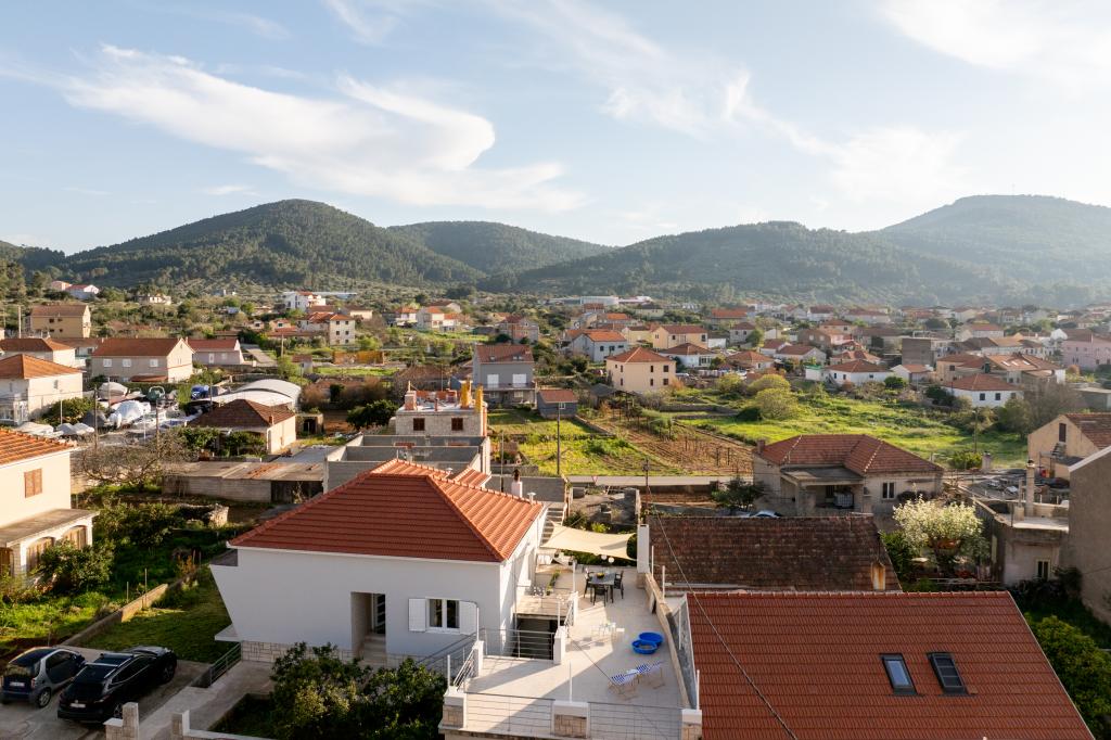 Ta velika samostojna družinska hiša se nahaja v mirnem delu Vele Luke, manj kot pet minut od centra, in ponuja 3 spalnice, popolnoma opremljeno kuhinjo s pomivalnim strojem in pečico, veliko dnevno sobo, kopalnico s tušem, veliko teraso in 2 zasebni parkirni mesti. Na voljo so brezplačen brezžični internet, klimatska naprava v dnevnih sobah, pralni stroj, pametni televizor, sušilec za lase in likalnik. Brisače in posteljnina so vključene. Na voljo vam je celotna nepremičnina z velikim vrtom. Otok Korčula je raj za kolesarje in ta hiša ima prostor za shranjevanje koles.