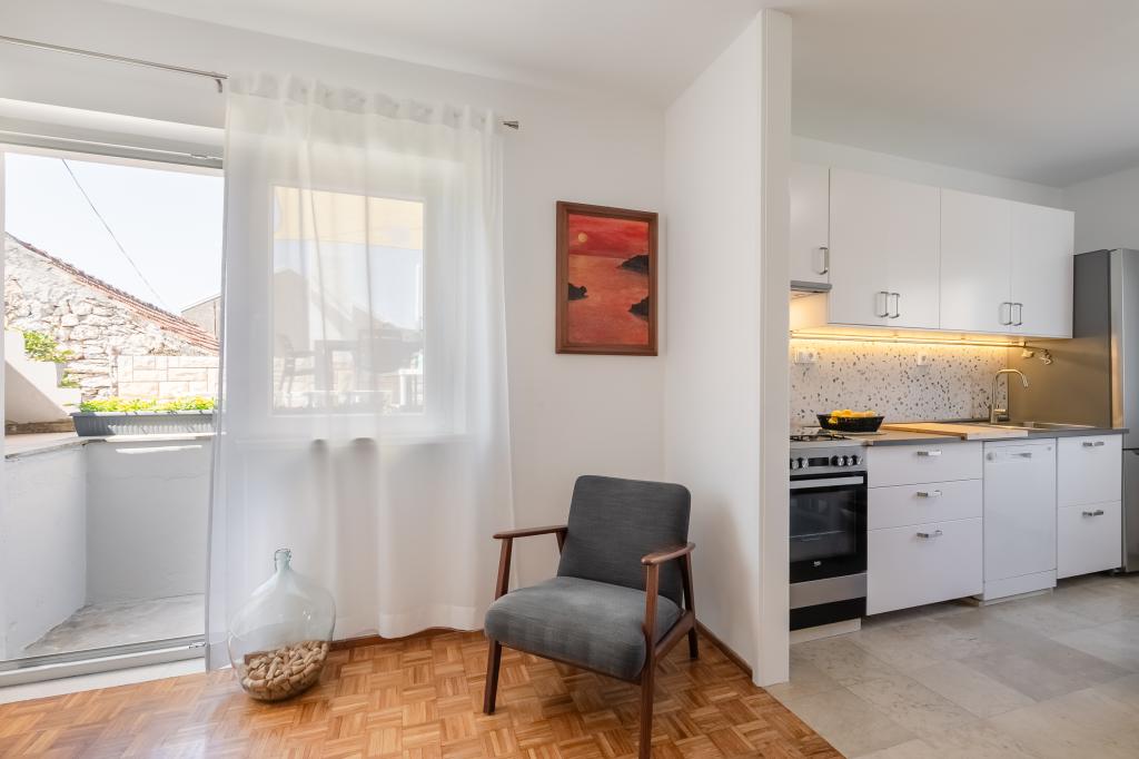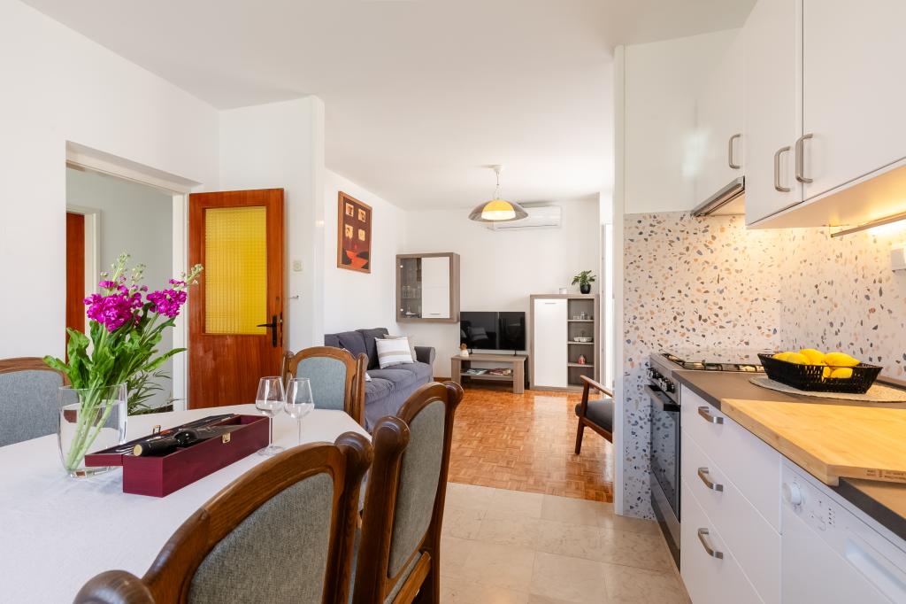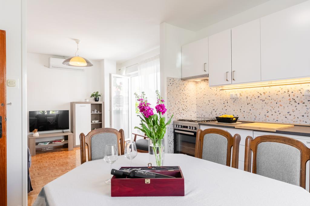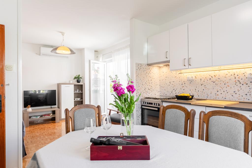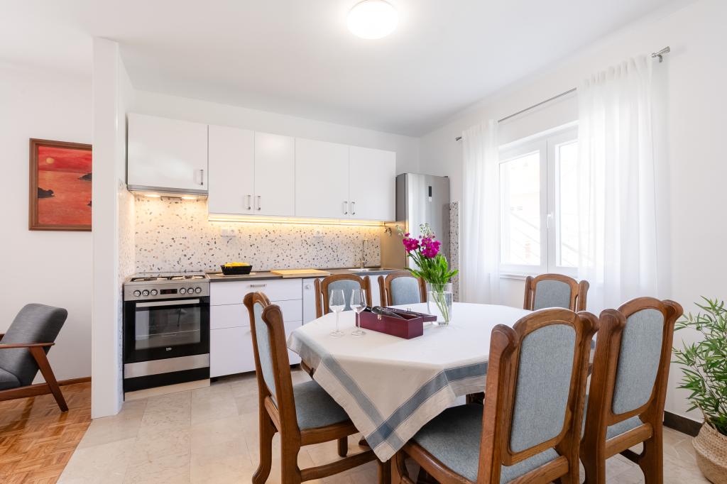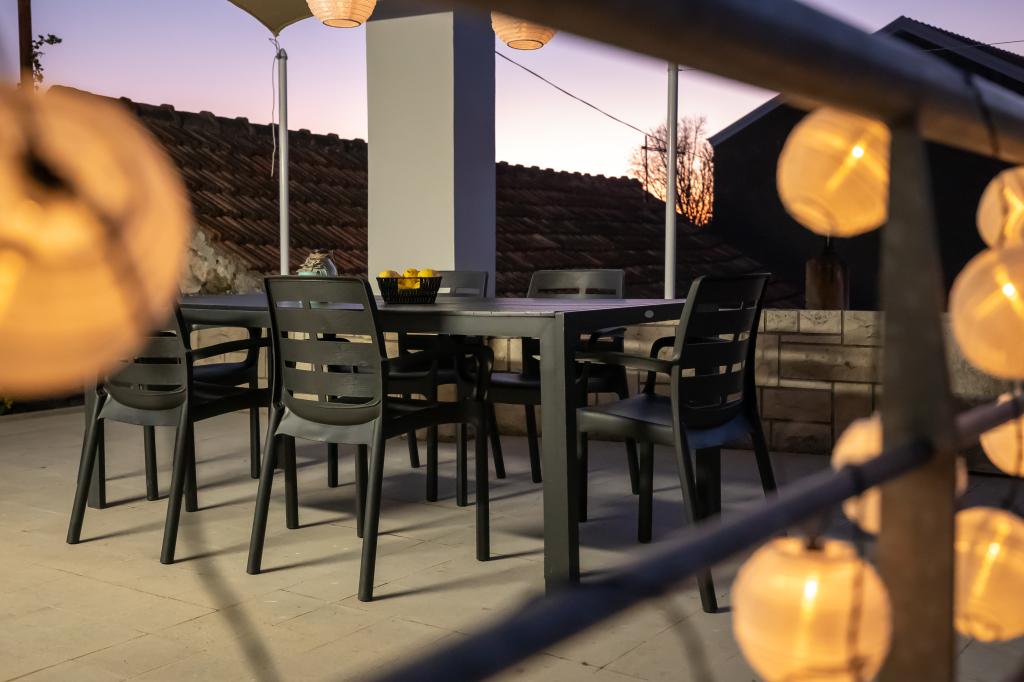 Ta velika samostojna družinska hiša se nahaja v mirnem delu Vele Luke, manj kot pet minut od centra, in ponuja 3 spalnice, popolnoma opremljeno kuhinjo s pomivalnim strojem in pečico, veliko dnevno sobo, kopalnico s tušem, veliko teraso in 2 zasebni parkirni mesti. Na voljo so brezplačen brezžični internet, klimatska naprava v dnevnih sobah, pralni stroj, pametni televizor, sušilec za lase in likalnik. Brisače in posteljnina so vključene. Na voljo vam je celotna nepremičnina z velikim vrtom. Otok Korčula je raj za kolesarje in ta hiša ima prostor za shranjevanje koles.