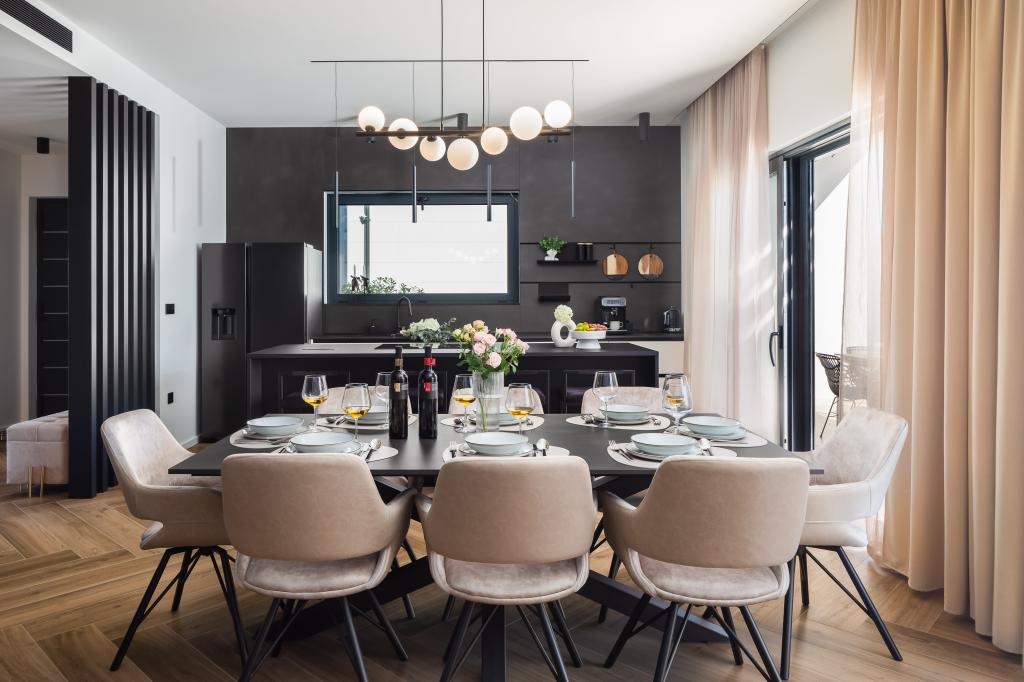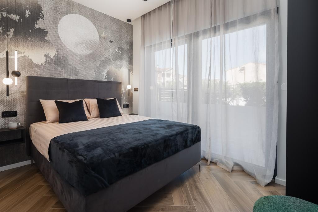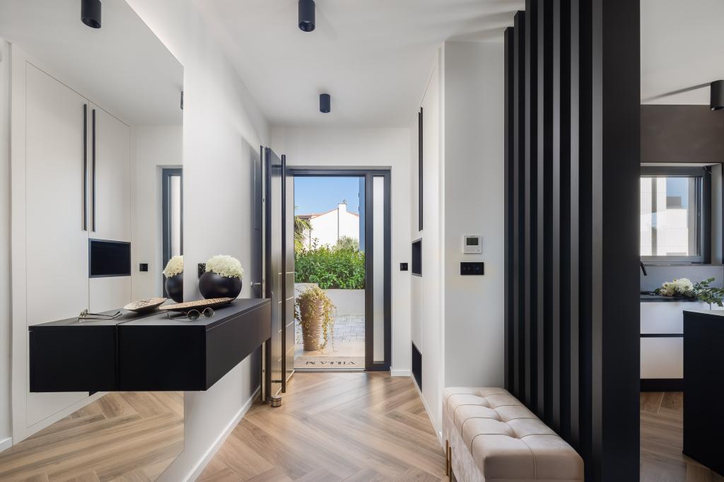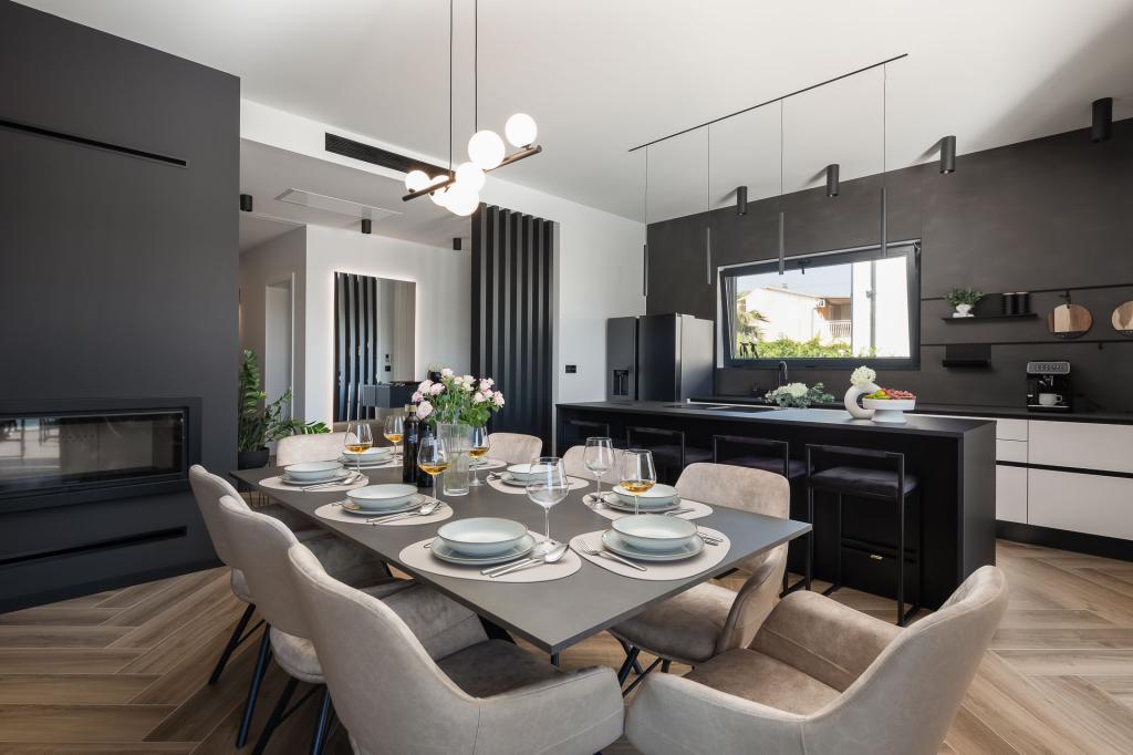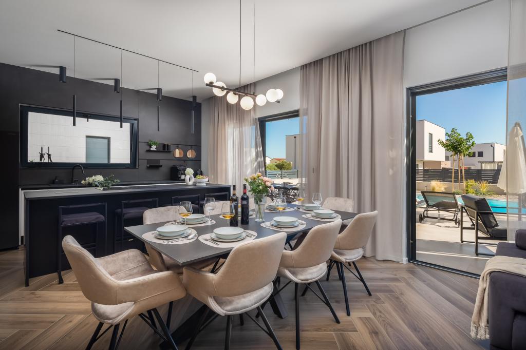 Čudovito urejena moderna vila v Vodicah v mirni vasici, idealna za vaše počitnice. Hiša je enonadstropna, z odprtim prostorom velike kuhinje in prostorne dnevne sobe z udobnim kavčem. Vila ima 3 spalnice s kopalnicami. Sprostite se lahko na prostorni terasi ob bazenu in uživate v pripravljenih jedeh z žara. Vila je ograjena.