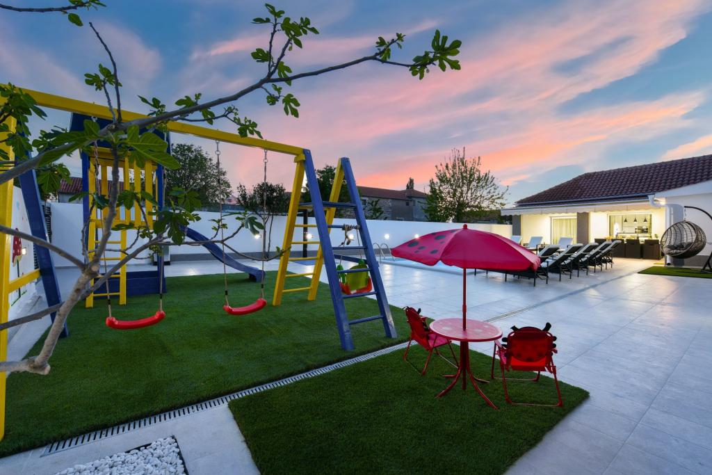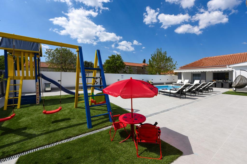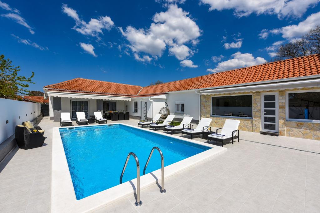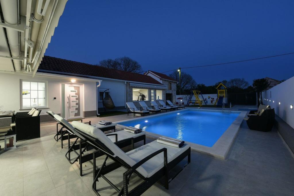 Zasebna vila Mare z ogrevanim bazenom. Nahaja se med mestom Zadar (2 km) in letališčem (5 km). Vila Mare je na novo prenovljena in popolnoma opremljena počitniška hiša. Vila ima zasebni ogrevan bazen, tri spalnice (dve od katerih se lahko raztegneta v raztegljivo posteljo), dnevno sobo s televizorjem z ravnim zaslonom (139 cm), popolnoma opremljeno kuhinjo z jedilnico, dve kopalnici, sobo za zabave (biljard, pikado, PlayStation), fitnes s televizorjem z ravnim zaslonom (139 cm). Vse sobe so klimatizirane. Vila ponuja tudi letno kuhinjo z notranjim žarom. Vila se oddaja tudi v najem od 1.10. do 1.4. po ceni 3000 evrov na mesec, minimalno obdobje najema pa je en mesec.